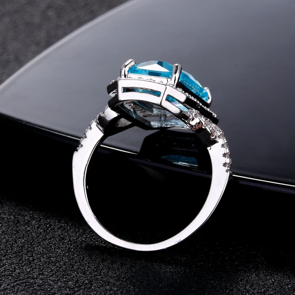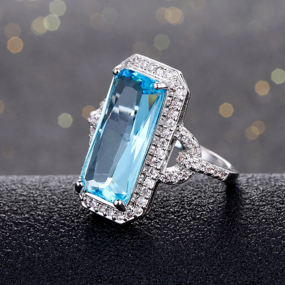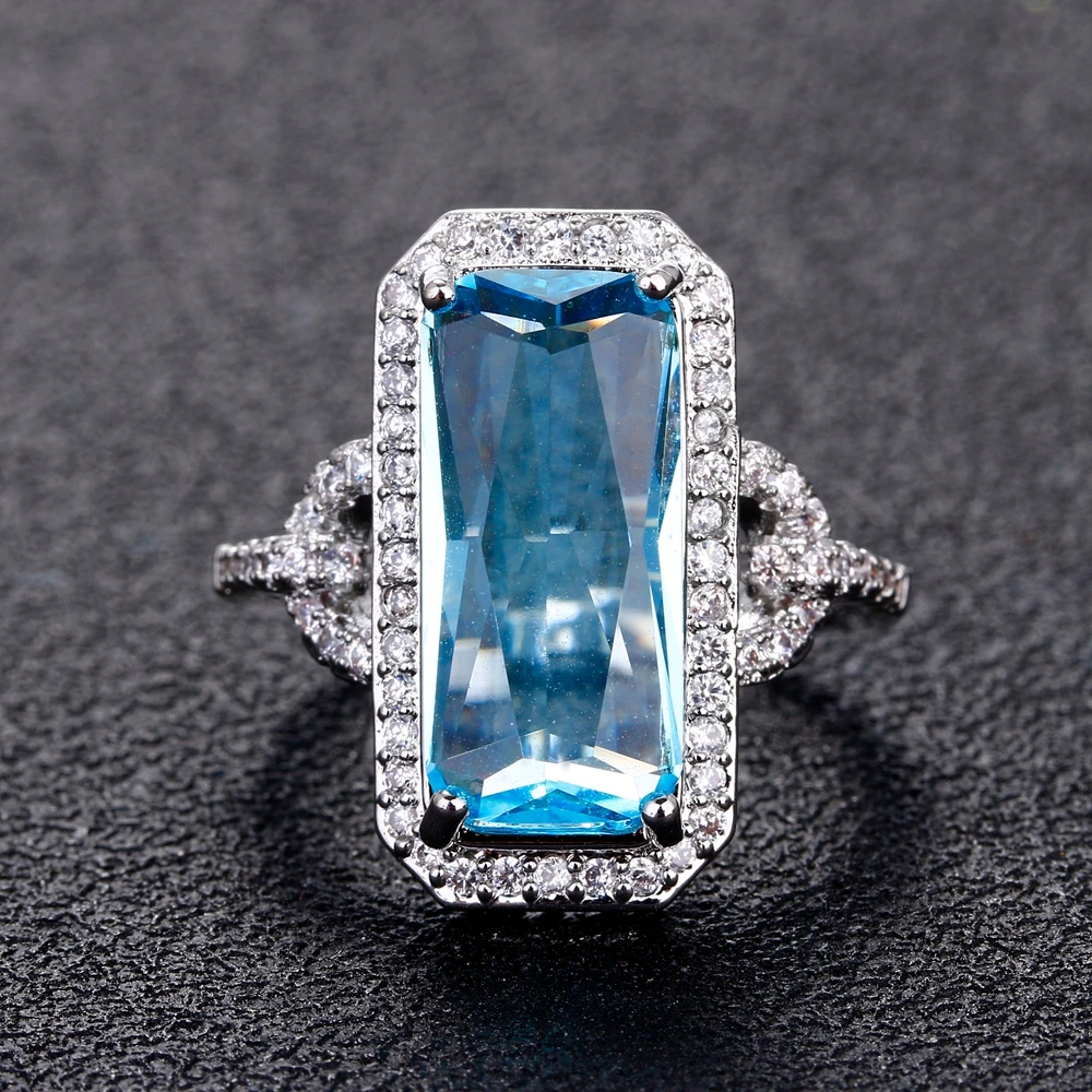 Silver Jewelry Rings For Women Hot Sale Rectangle Sapphire Ring With Clear Zircon Stones 4.5g Daily life Decoration Accessories