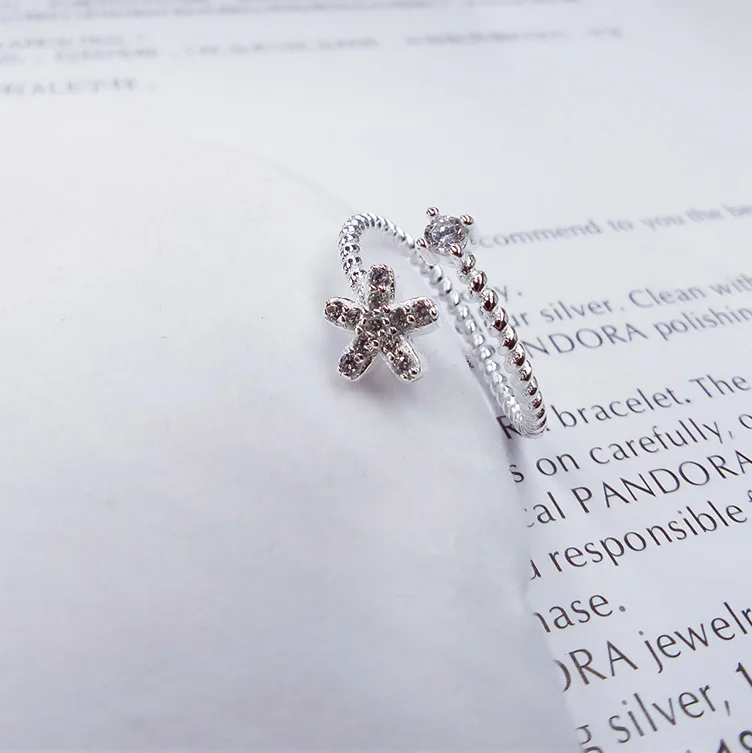 Silver Ring Charm Trendy Plum Flower Open Silver Ring Adjustable Size Cubic Zirconia Ring For Women Jewelry