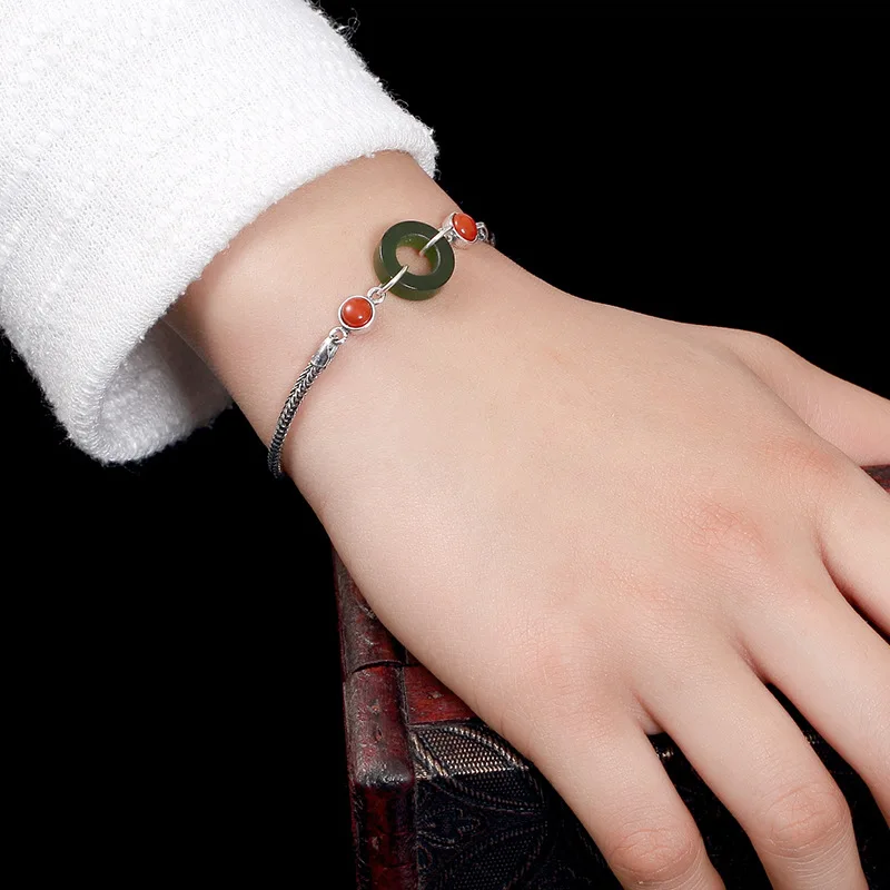 silver Thai silver inlaid hetian jade jade south red lady style restoring ancient ways joker silver bracelet