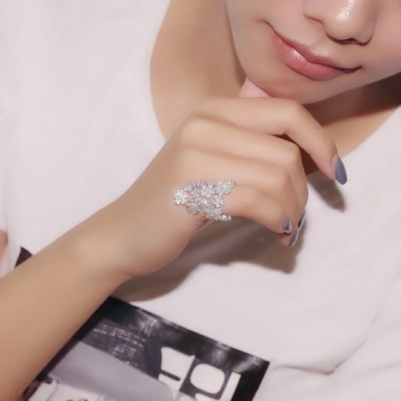 Luxury S925 Sterling Silver Full Flowers Litter Finger Rings Micro Cubic Zircon Women Mocano Brand Fashion Party Jewelry