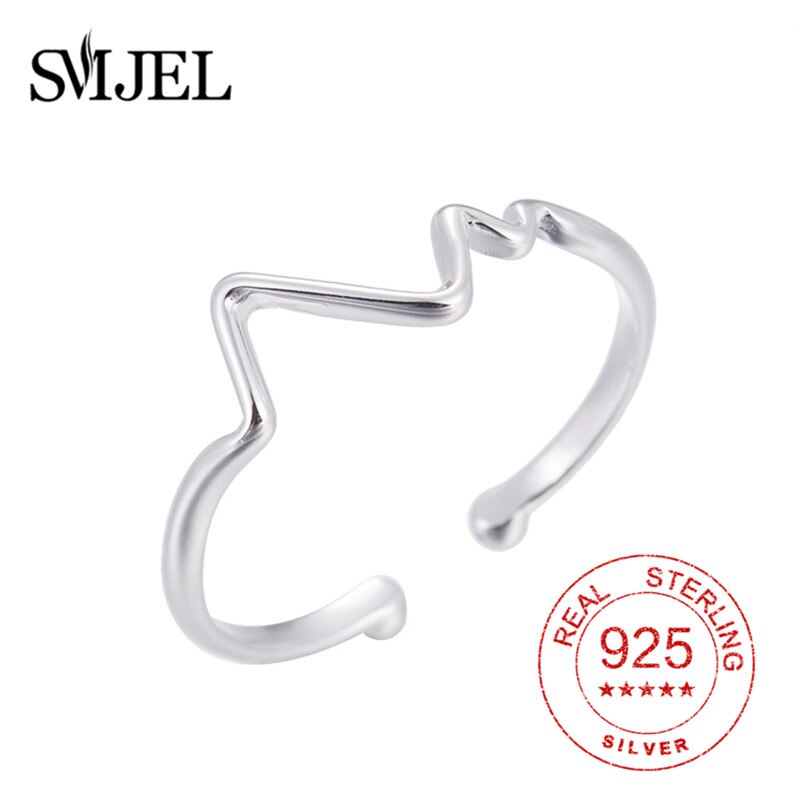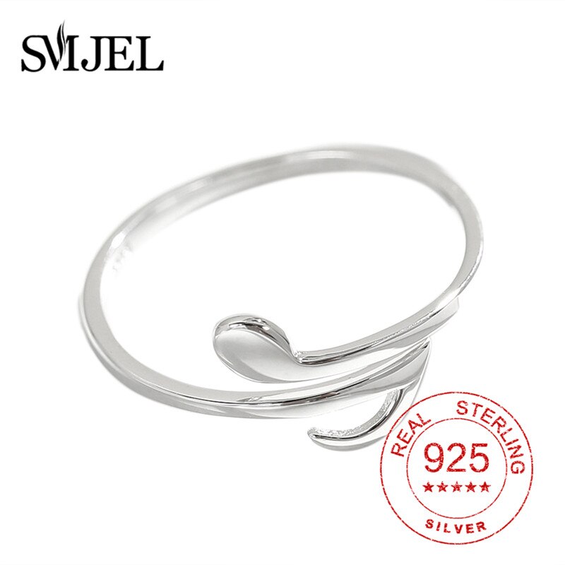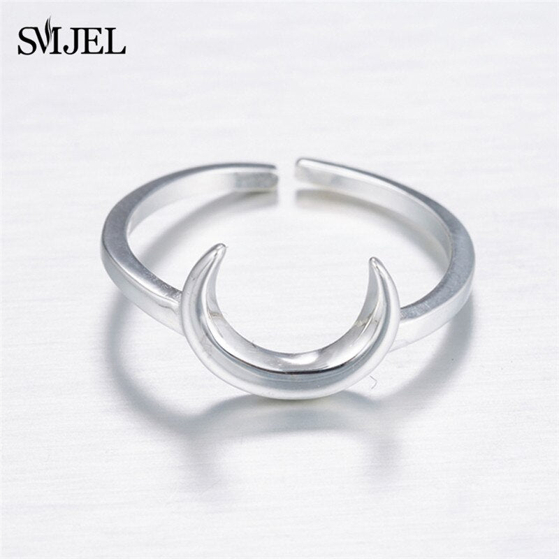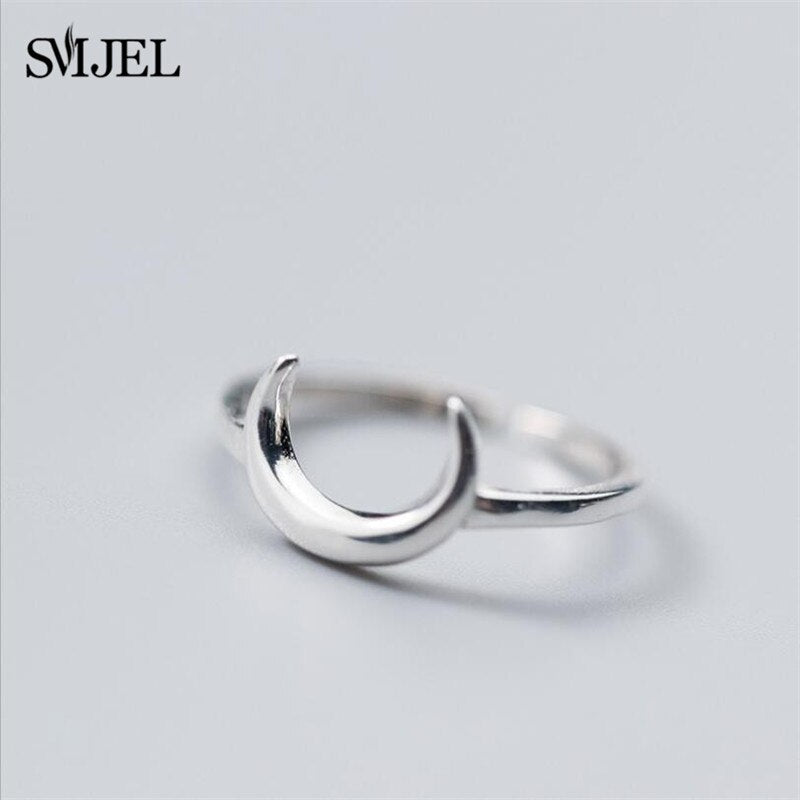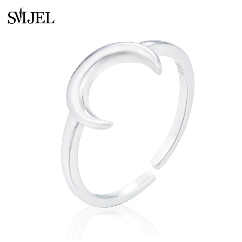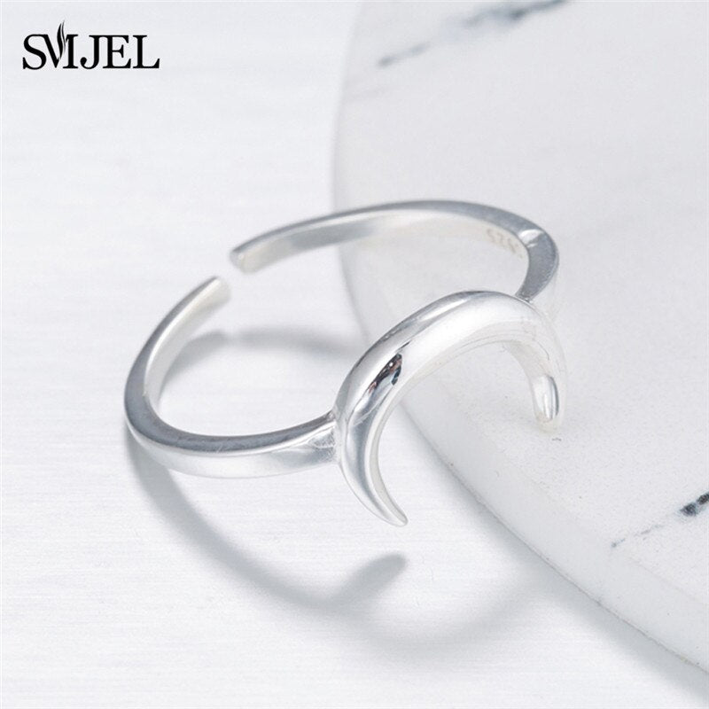 SMJEL 100% 925 Sterling Silver Half Moon Rings For Women Christmas Gift Crescent Deer Horn Ring Lady Jewelry