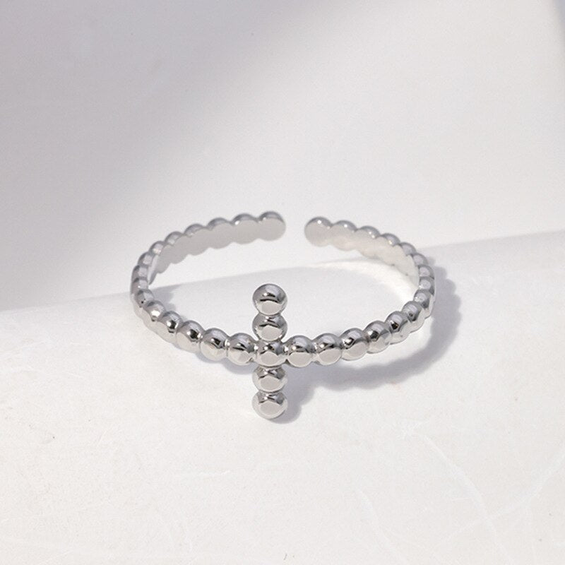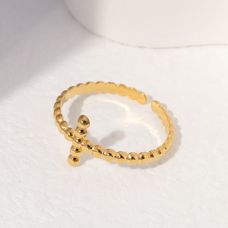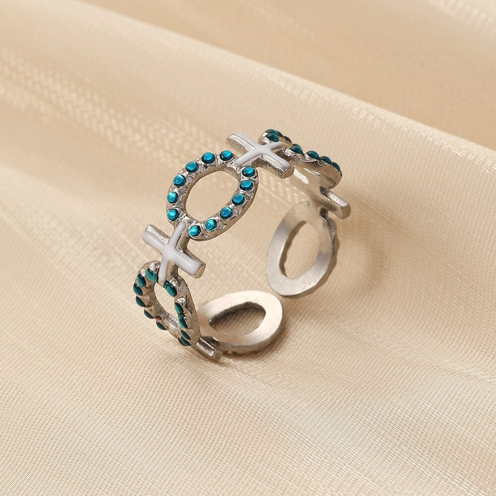 Stainless Steel Women's Open Adjustable O Cross Ring Gold Cubic Zirconia Adjustable Finger Rings For Women anillos mujer