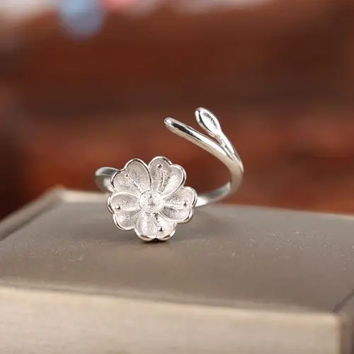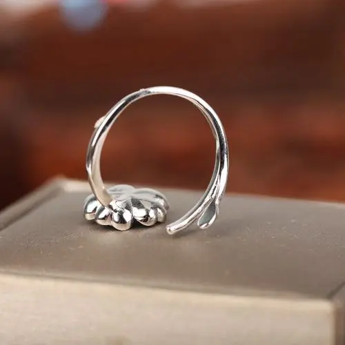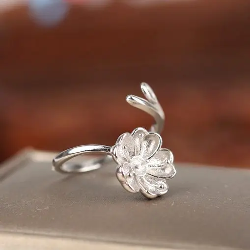 Sterling Silver 925 Women Enagement Wedding Anniversary Ring Flower Semi Mount for 6-8mm Pearl or Round Bead Adjustable Open