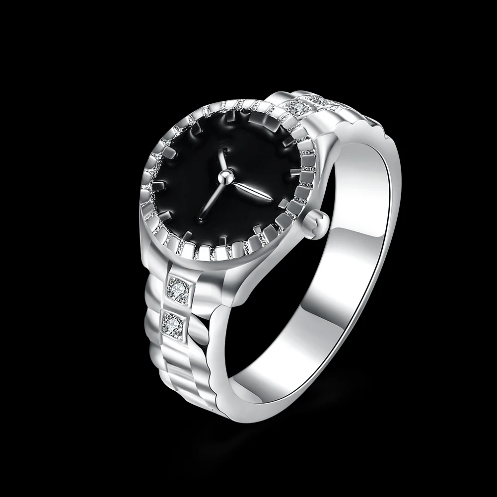 Street trend 925 Sterling Silver fine crystal Black watch Rings For Women men Charms Party wedding Jewelry Gifts