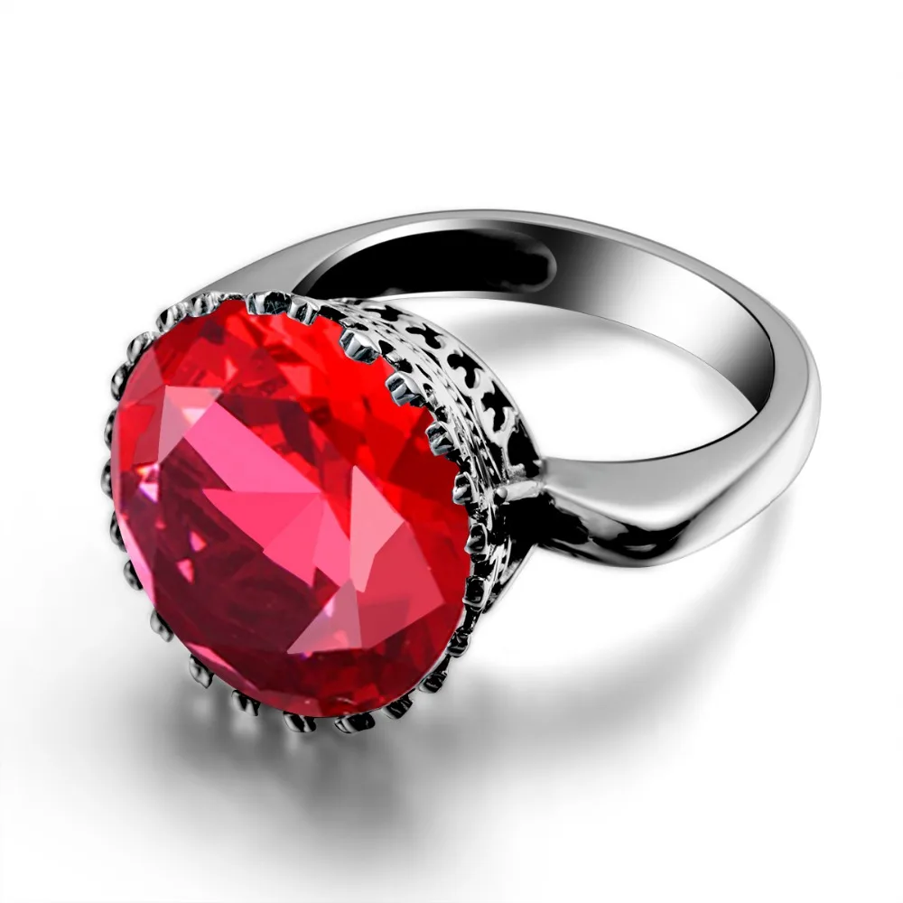 Wholesale Princess Crown Big Rings for Women Round Red RubyWedding Engagement Punk Rock 925 Sterling Silver Jewelry