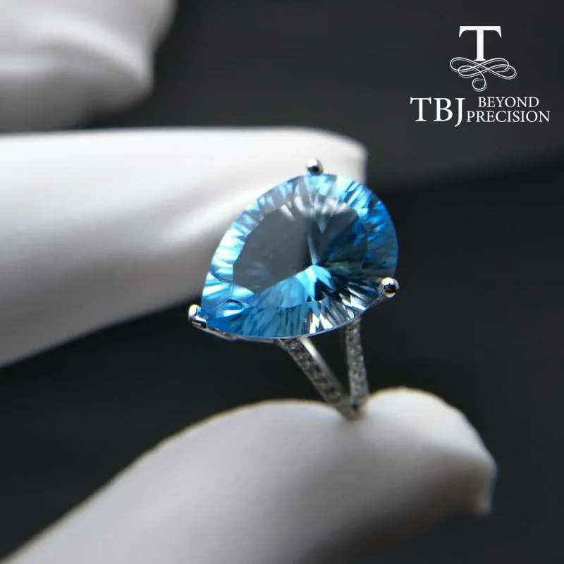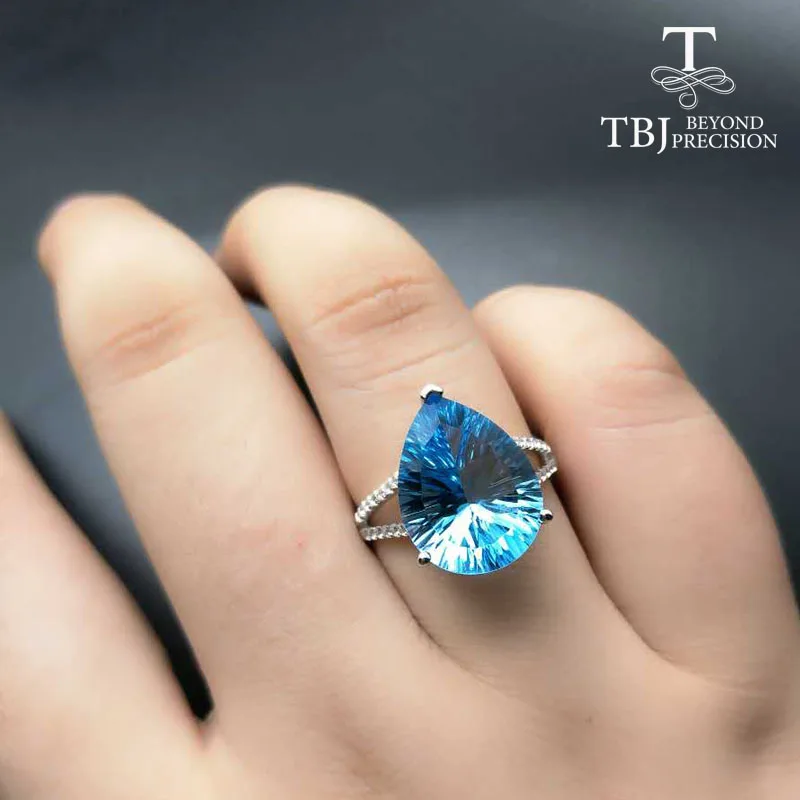 TBJ ,100% natural 10ct blue topaz concave cut pe12*16 gemstone ring in 925 sterling silver jewelry,Big ring for lady with box