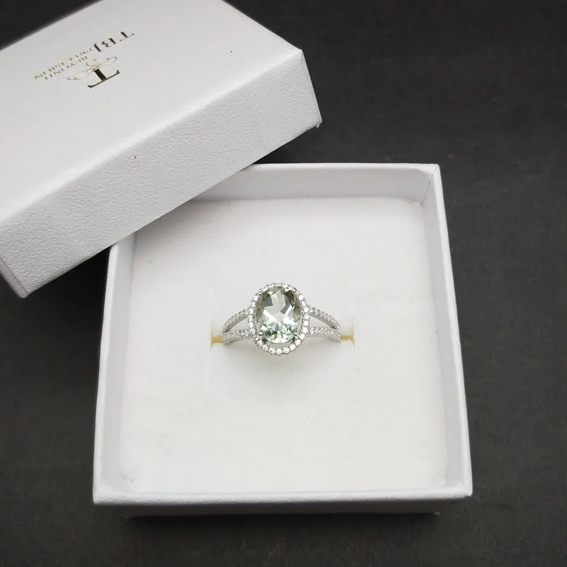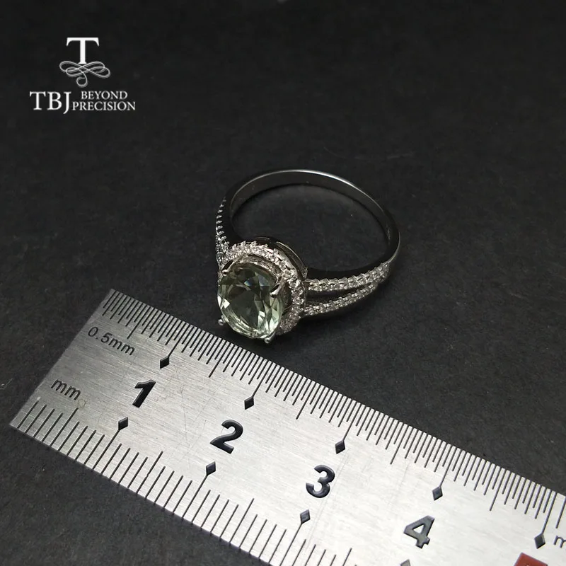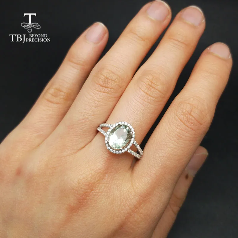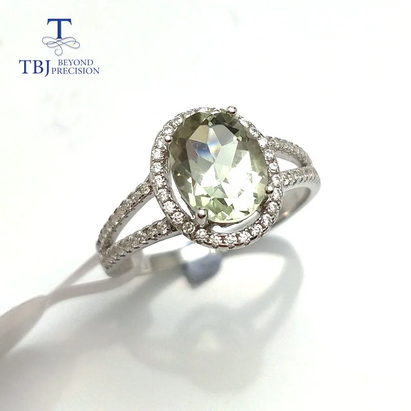 TBJ,Classic natural green amethyst quarts gemstone Ring in 925 sterling silver simple shiny jewelry for women girls daily wear