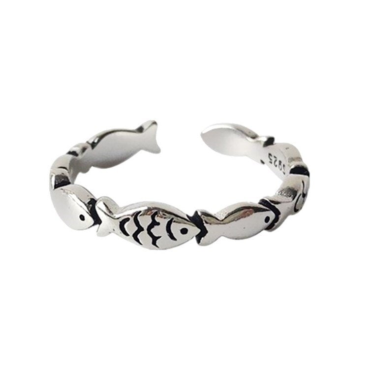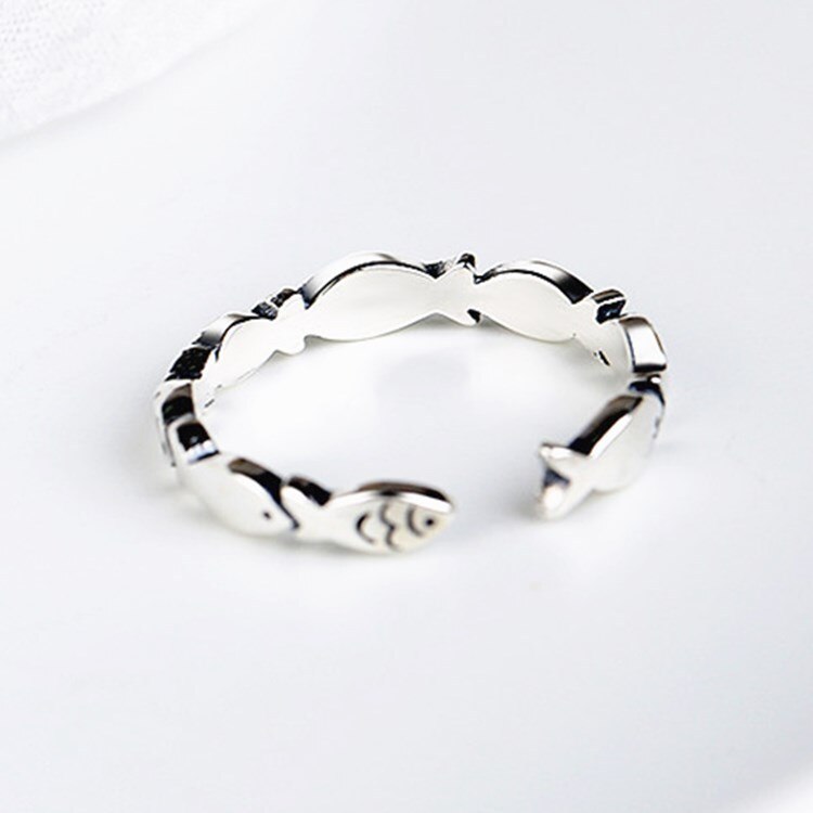 Thai Silver Fish Resizable Woman Rings Aestethic Punk Jewelry Accessories Gift Female Items GaaBou Jewellery