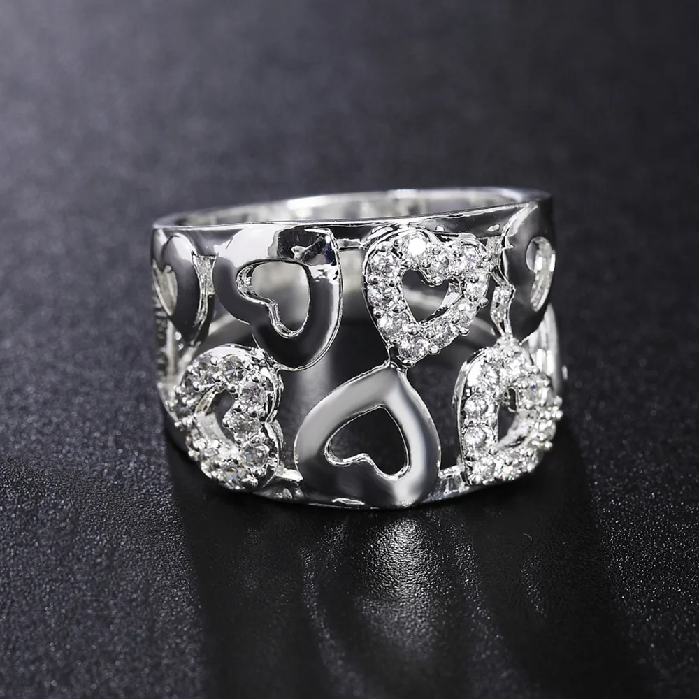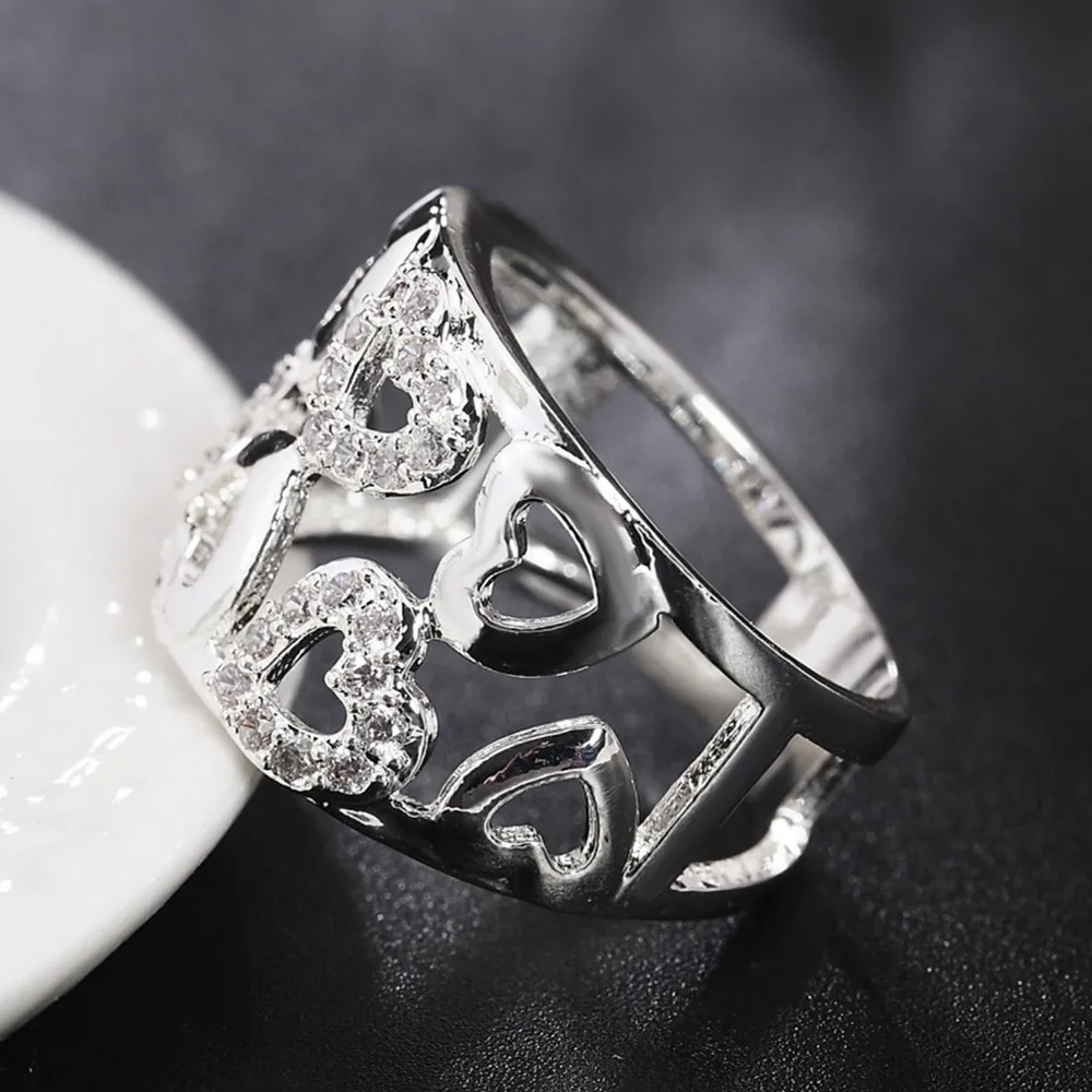 trend 925 Sterling Silver wide fine crystal Pretty romantic heart Rings For Women Party wedding Jewelry Gifts