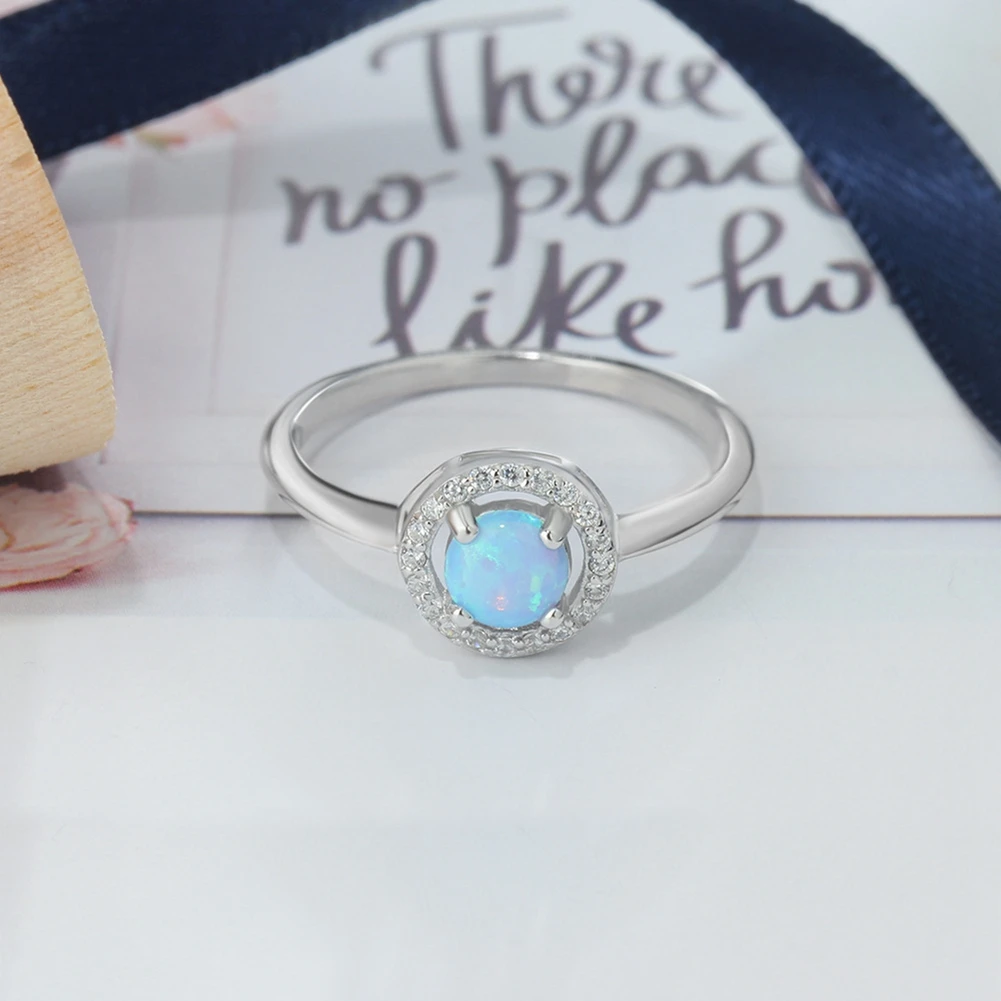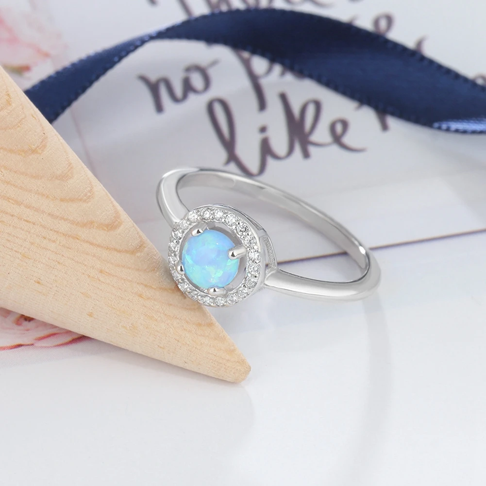Trendy 925 Sterling Silver Fine Jewelry AAA Zirconia & Round Opal Rings For Women Luxury Engagement Wedding Jewelry Gifts