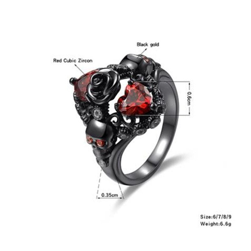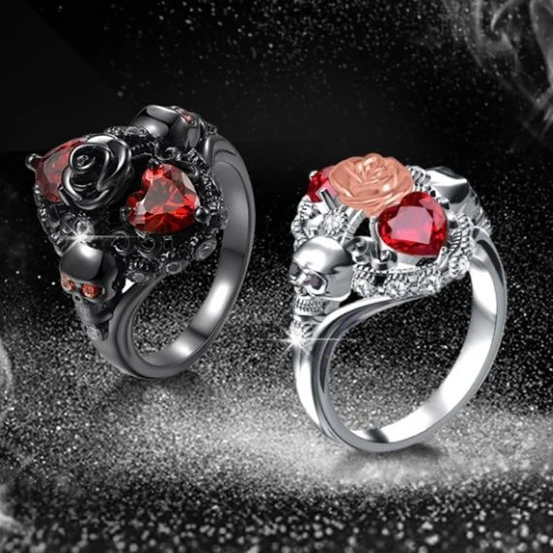Trendy Rose Skull Pattern Bohemian Heart-Shaped Crystal Inlaid Ring Women's Ring Skull Ring Accessories Party Jewelr