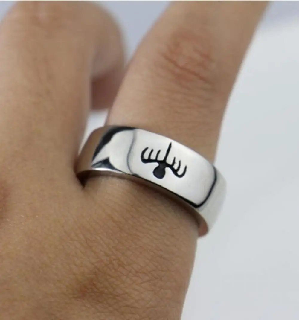 Trendy Stainless Steel Mysterious Rune Pattern Ring Men's Ring Argentate Polished Amulet Ring Jewelry Accessory Party Gift
