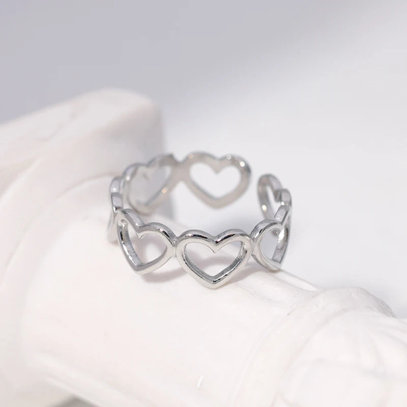 Trendy Stainless Steel Rings for Women Flower Heart Adjustable Finger Ring Party Jewelry Geometric Aesthetic Open Ring