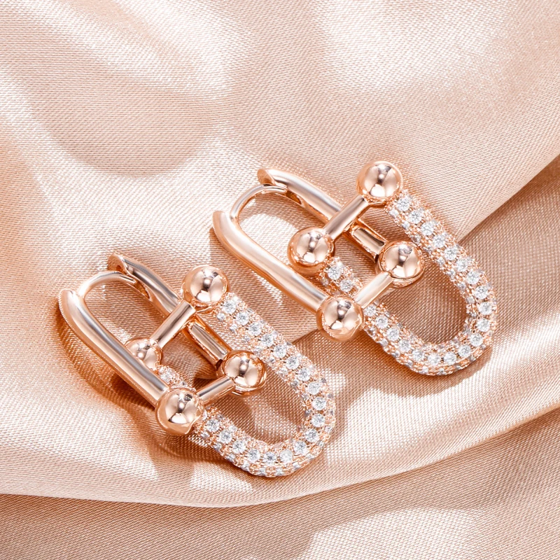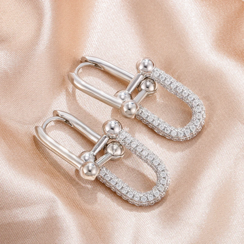 Trendy U Shap Lock Buckle Earrings for Women with CZ Stone Gold Silver Color Thick Link Jewelry Gift