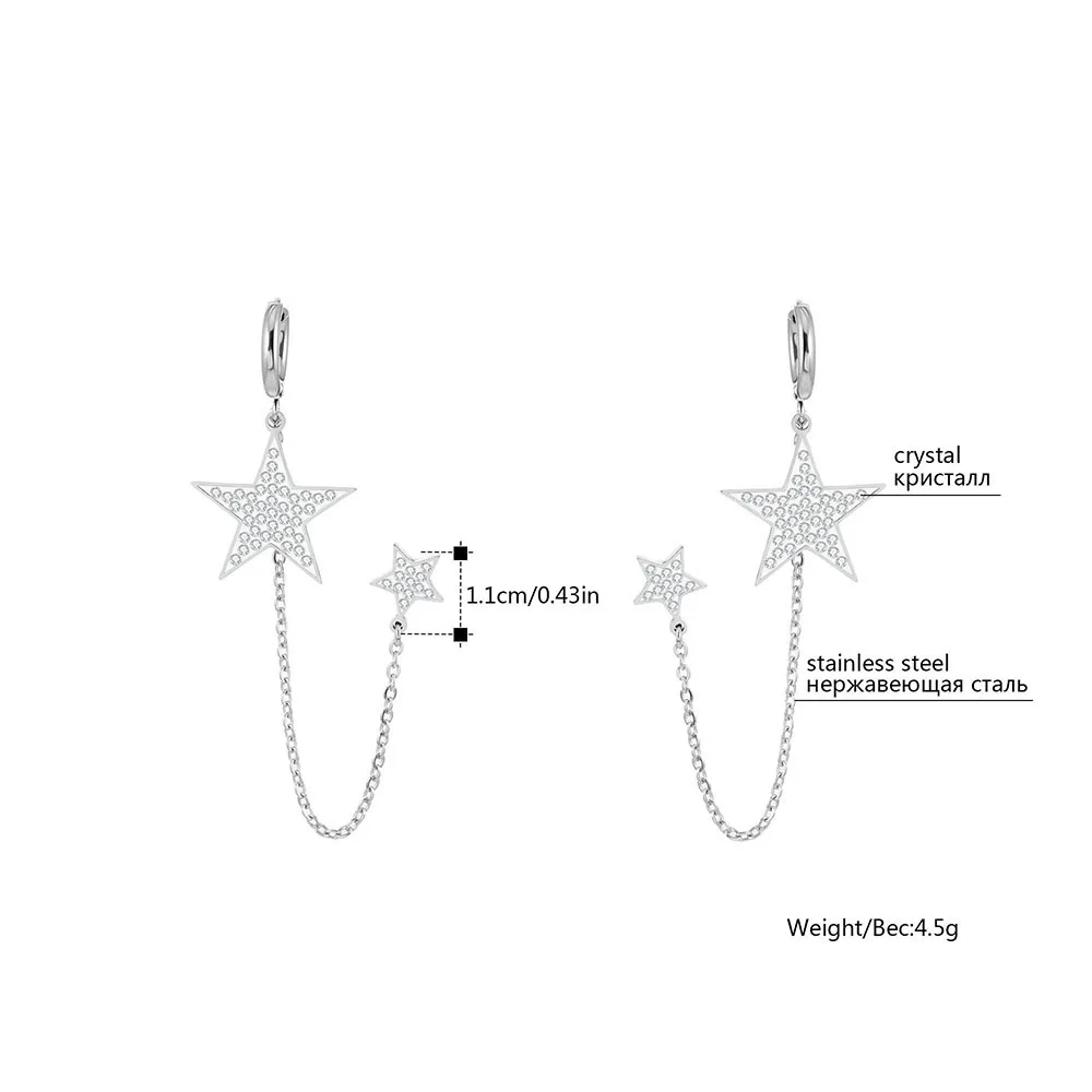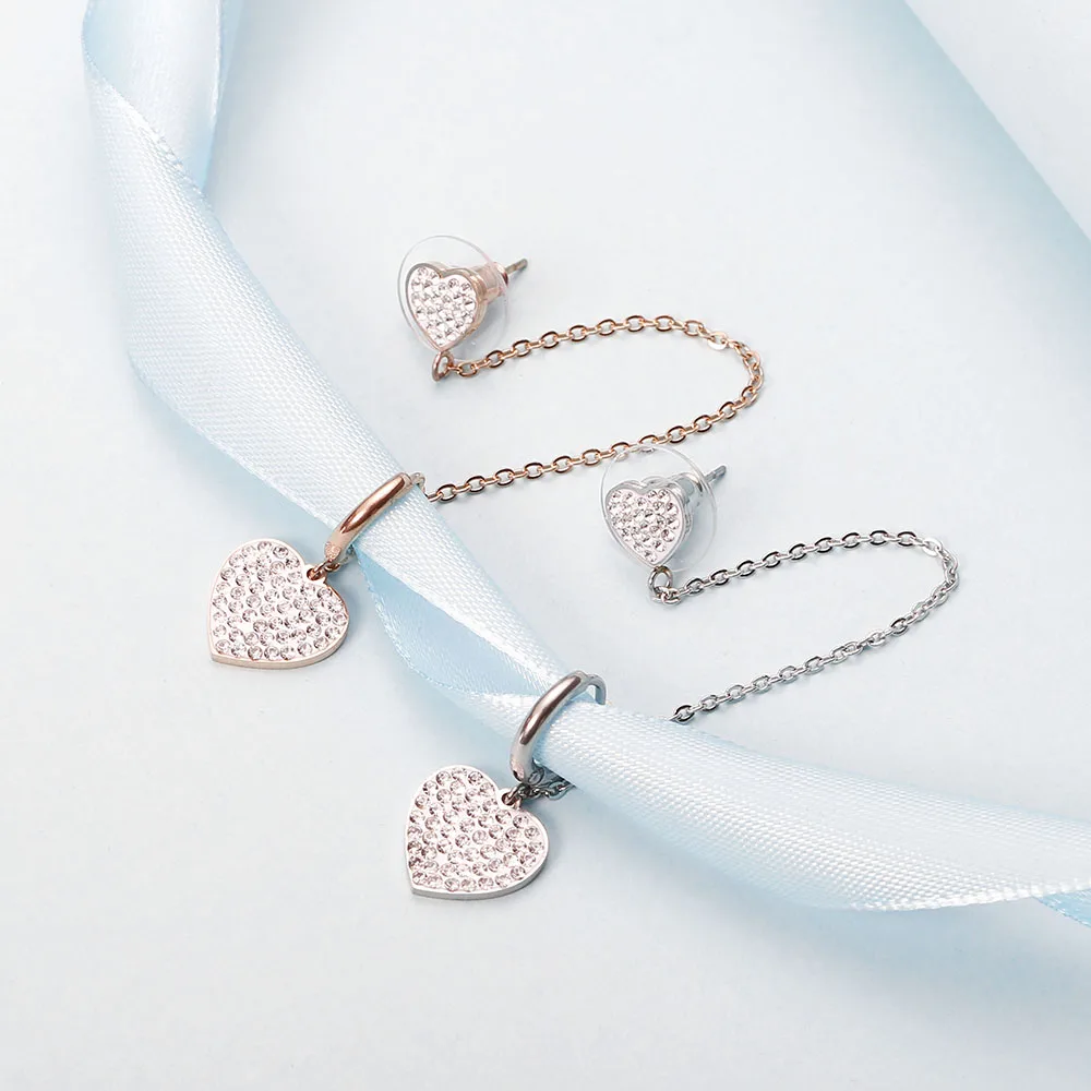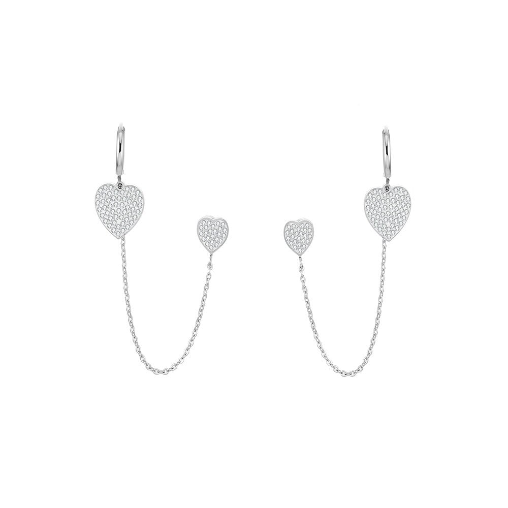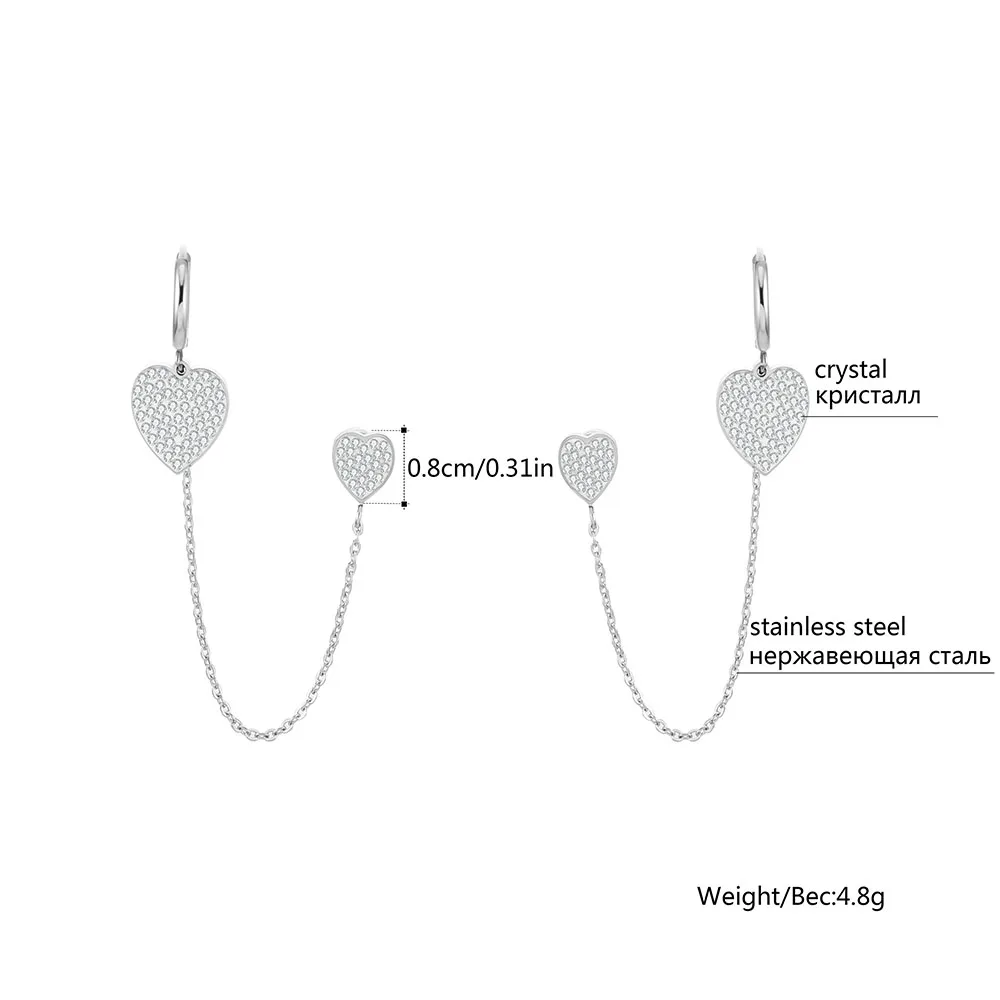 Two pairs Stainless Steel Hoops Silverly Earrings Crystal Double Heart For woman’s Birthday Party Gift Earrings Chain 2022Trend