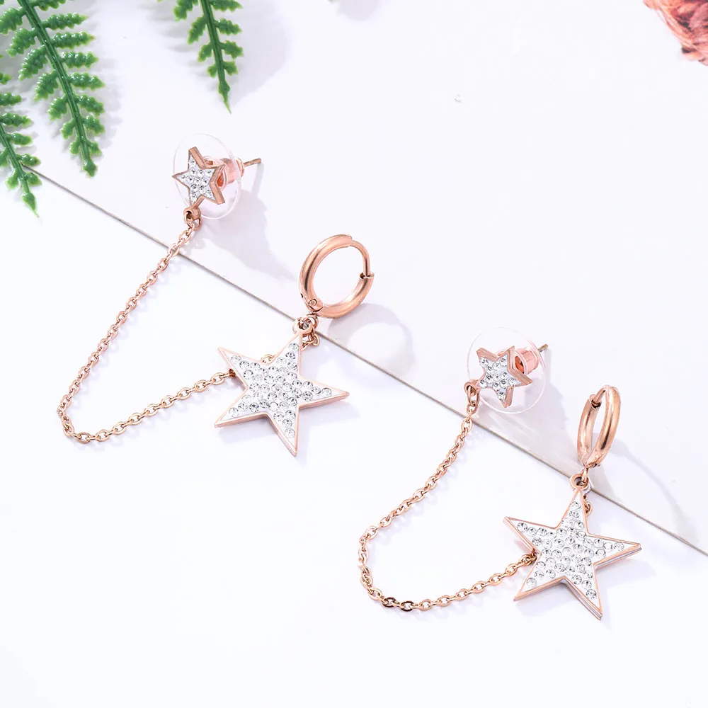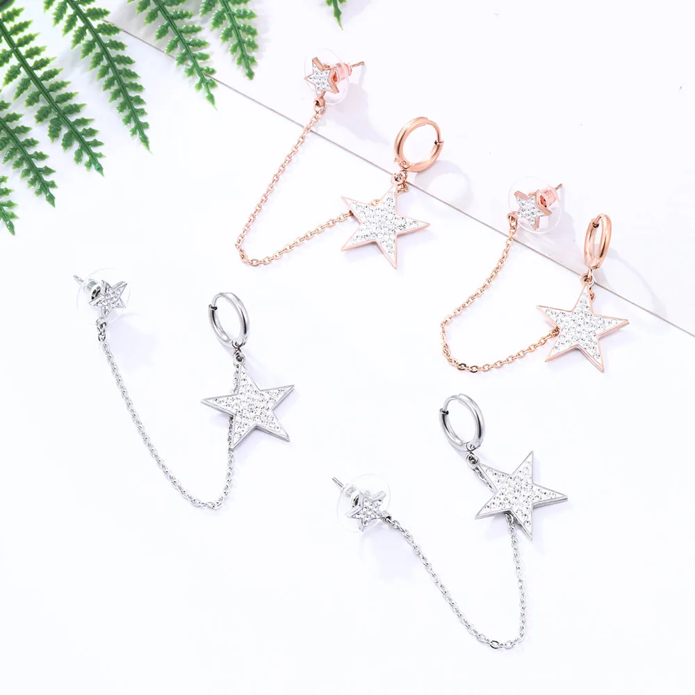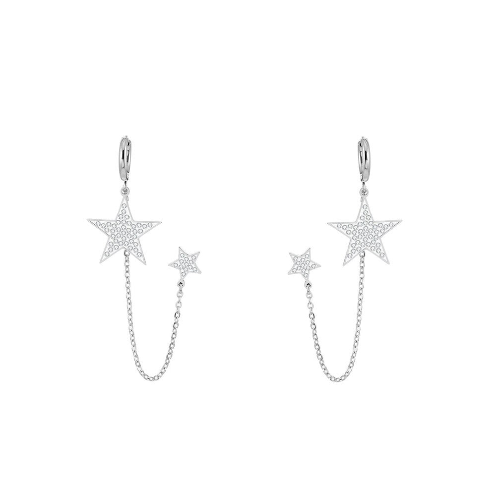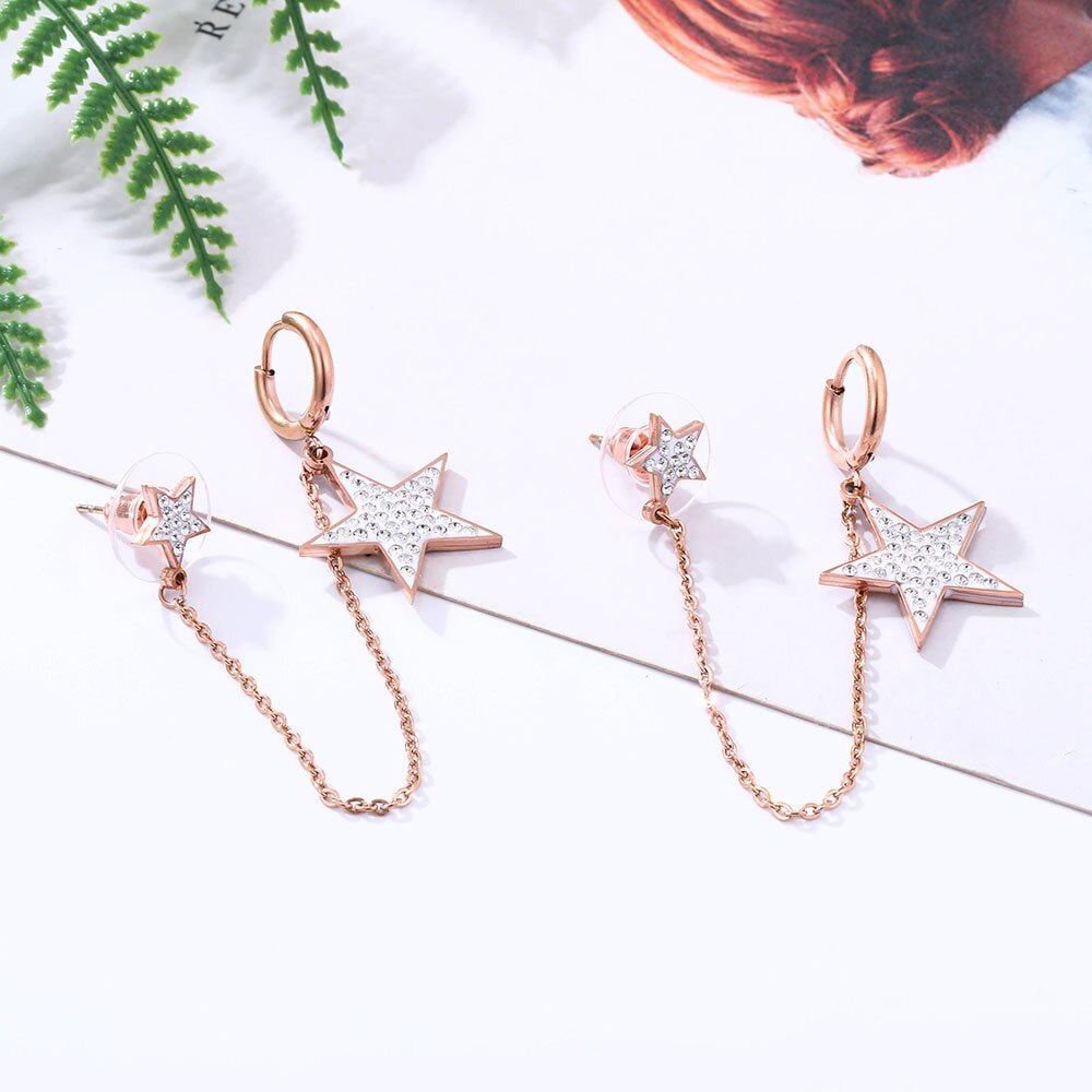 Two pairs Stainless Steel Hoops Silverly Earrings Crystal Double Heart For woman’s Birthday Party Gift Earrings Chain 2022Trend