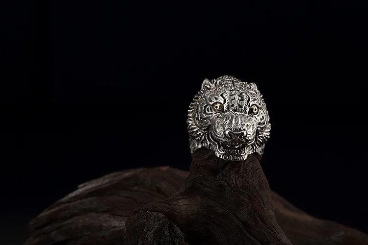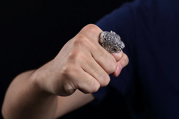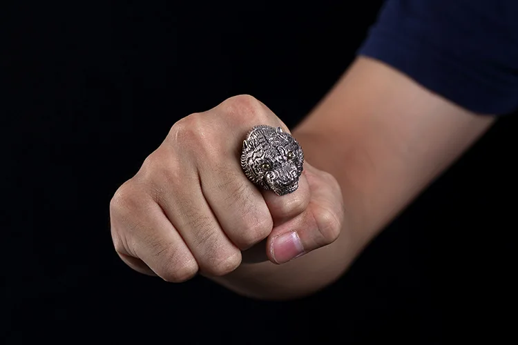 Thai 925 Sterling Silver Men Opening Rings Handmade Carved Big Size Horrible Dogs Ring Co Guys Jewelry Vintage Bijoux