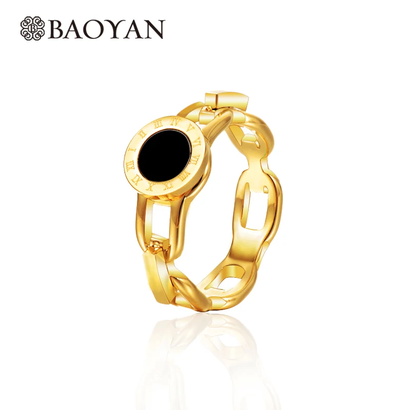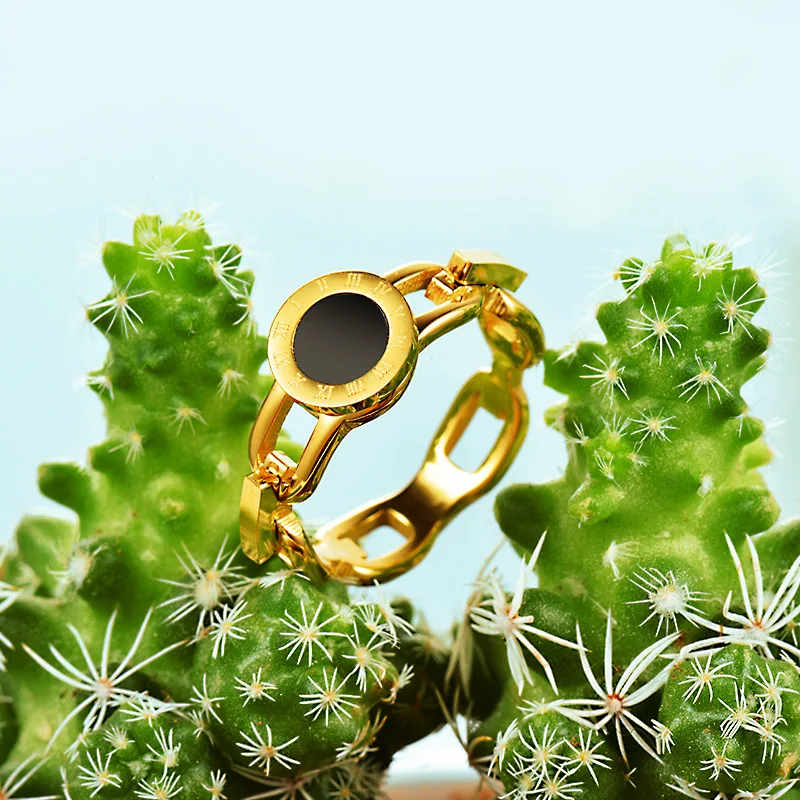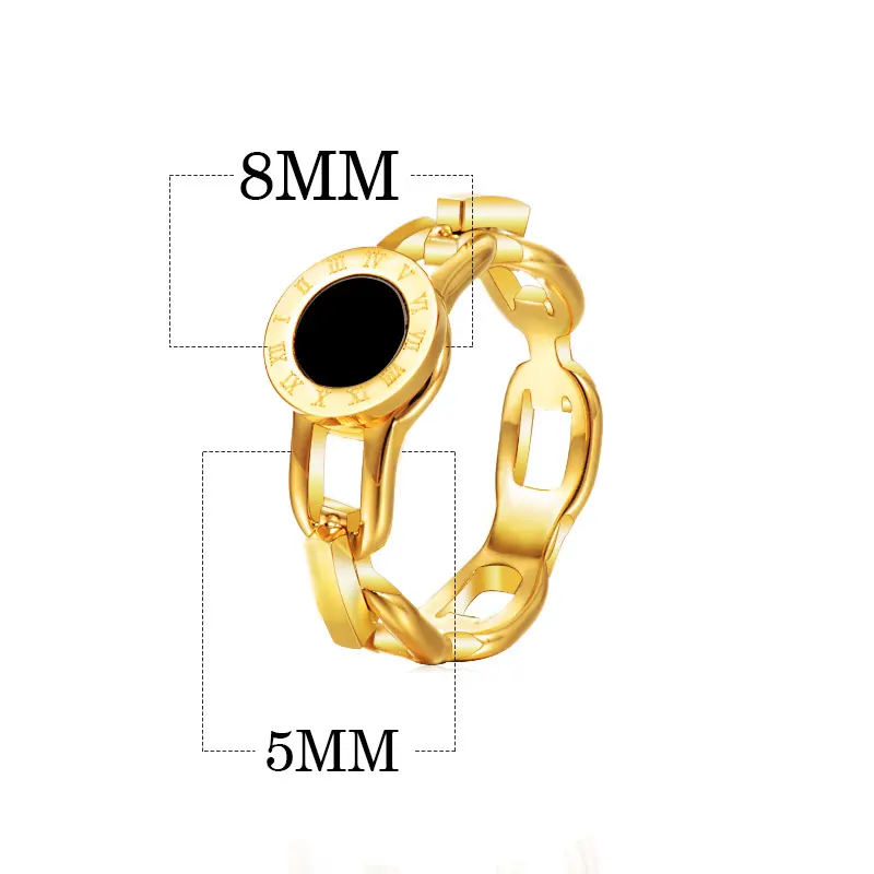 Cute Fashion Ladies Girls Unique Design Arabic Number Black Gold Color 316L Stainless Steel Ring For Women Wholesale