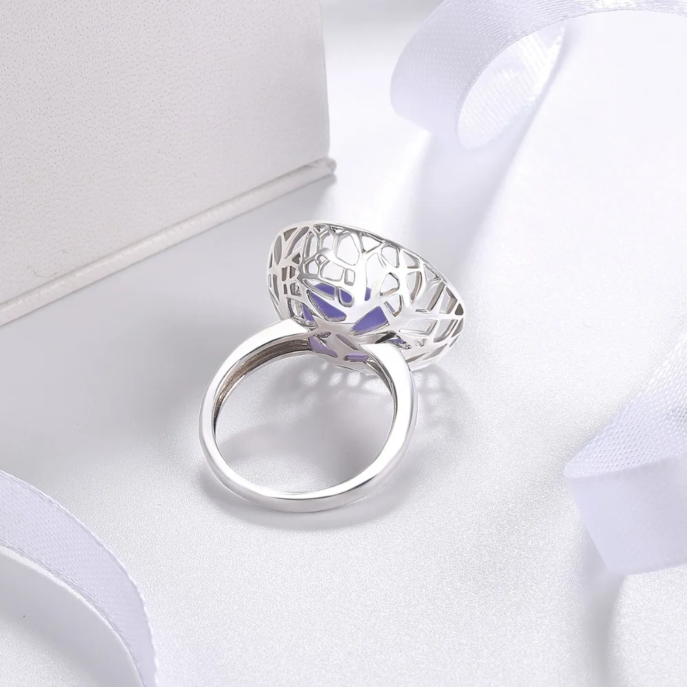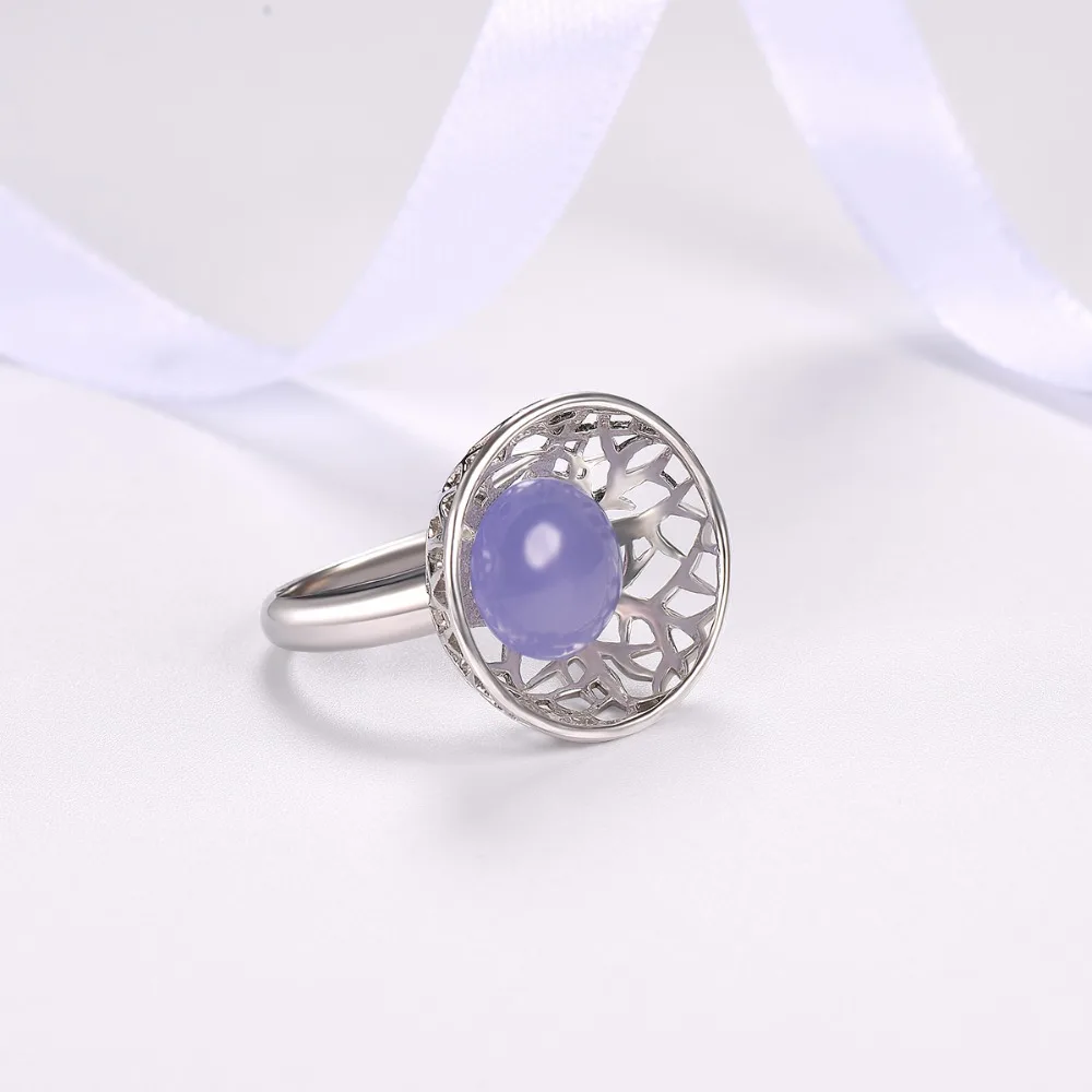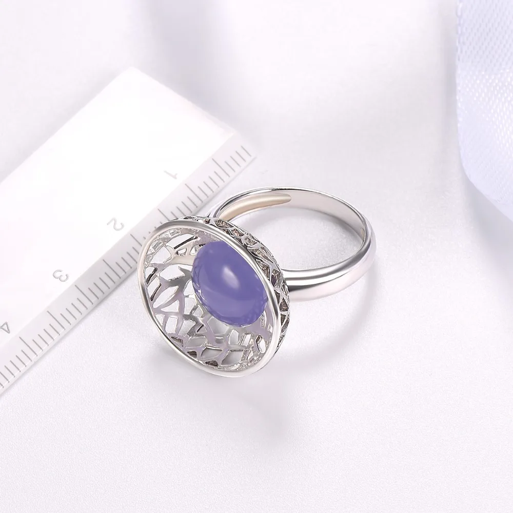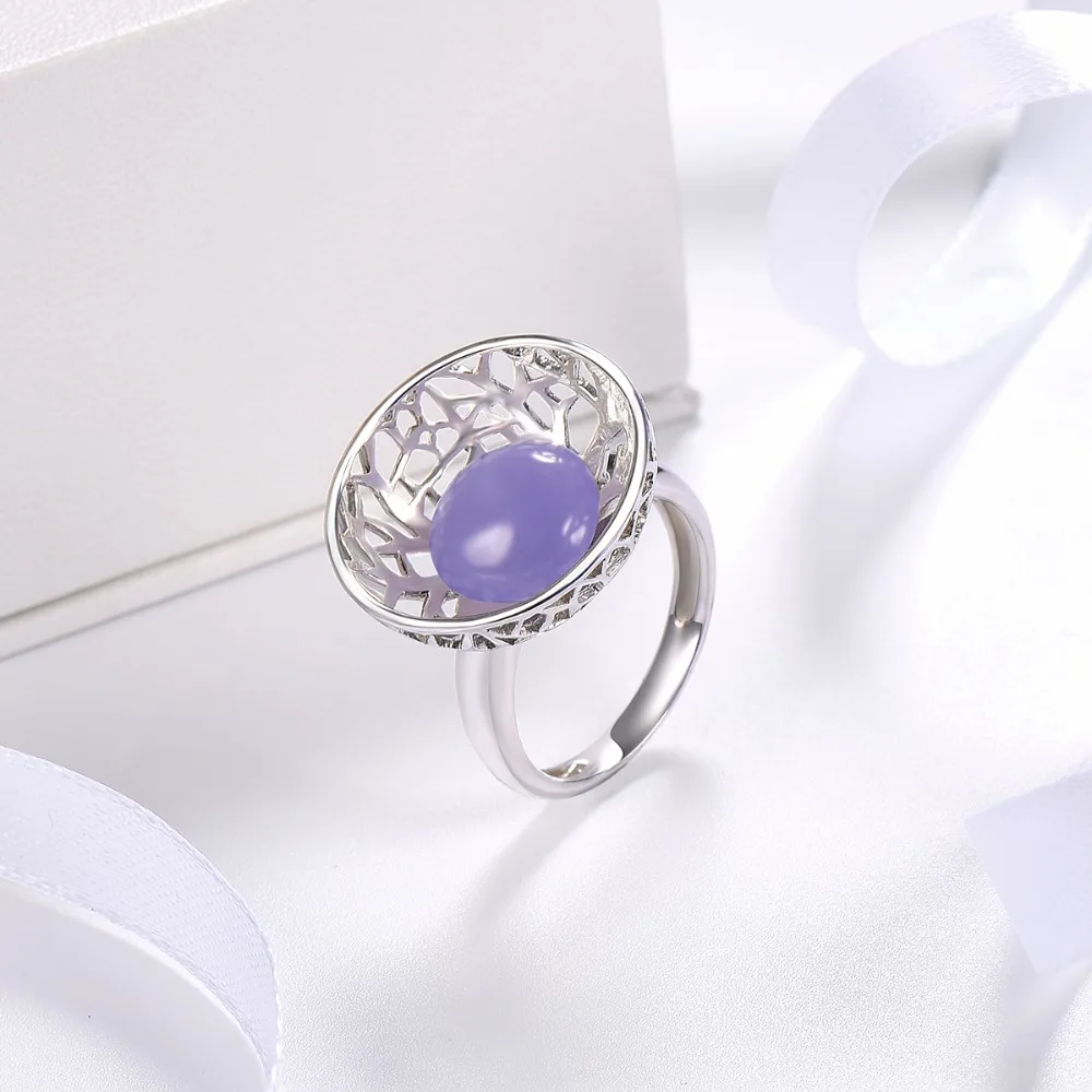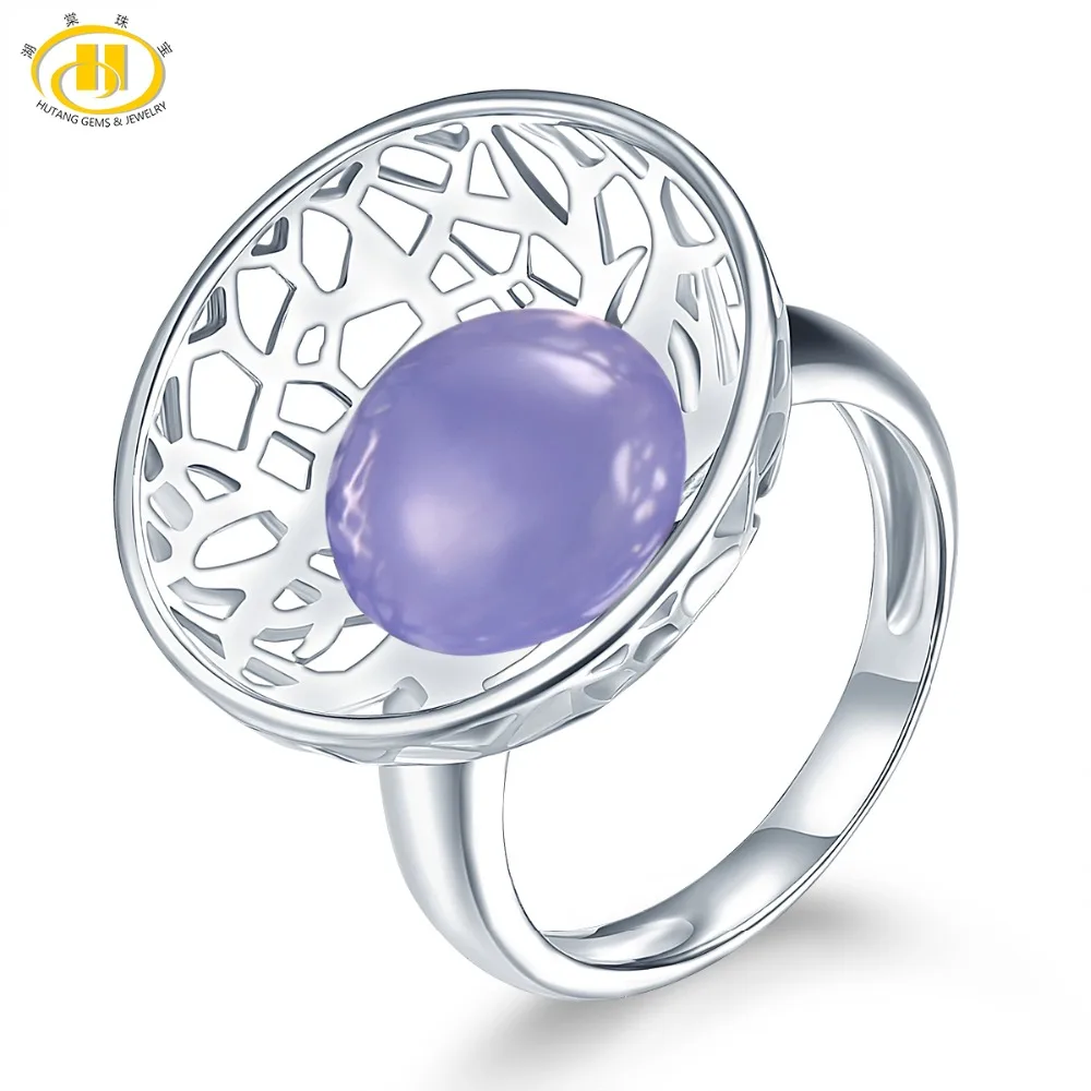 Hutang Gemstone Jewelry Natural Purple Chalcedony Solid 925 Sterling Silver Ring Fine Fashion Stone Jewelry For Women's Gift