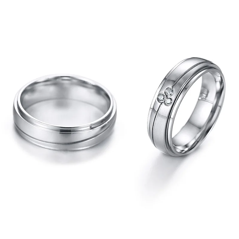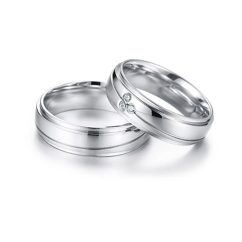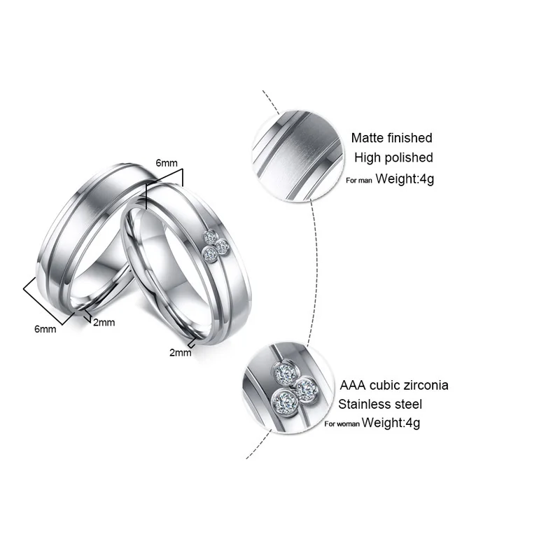 Elegant Couple Rings For Women Men Stainless Steel Wedding Bands AAA CZ Stones Trendy Anel Alliance Gift