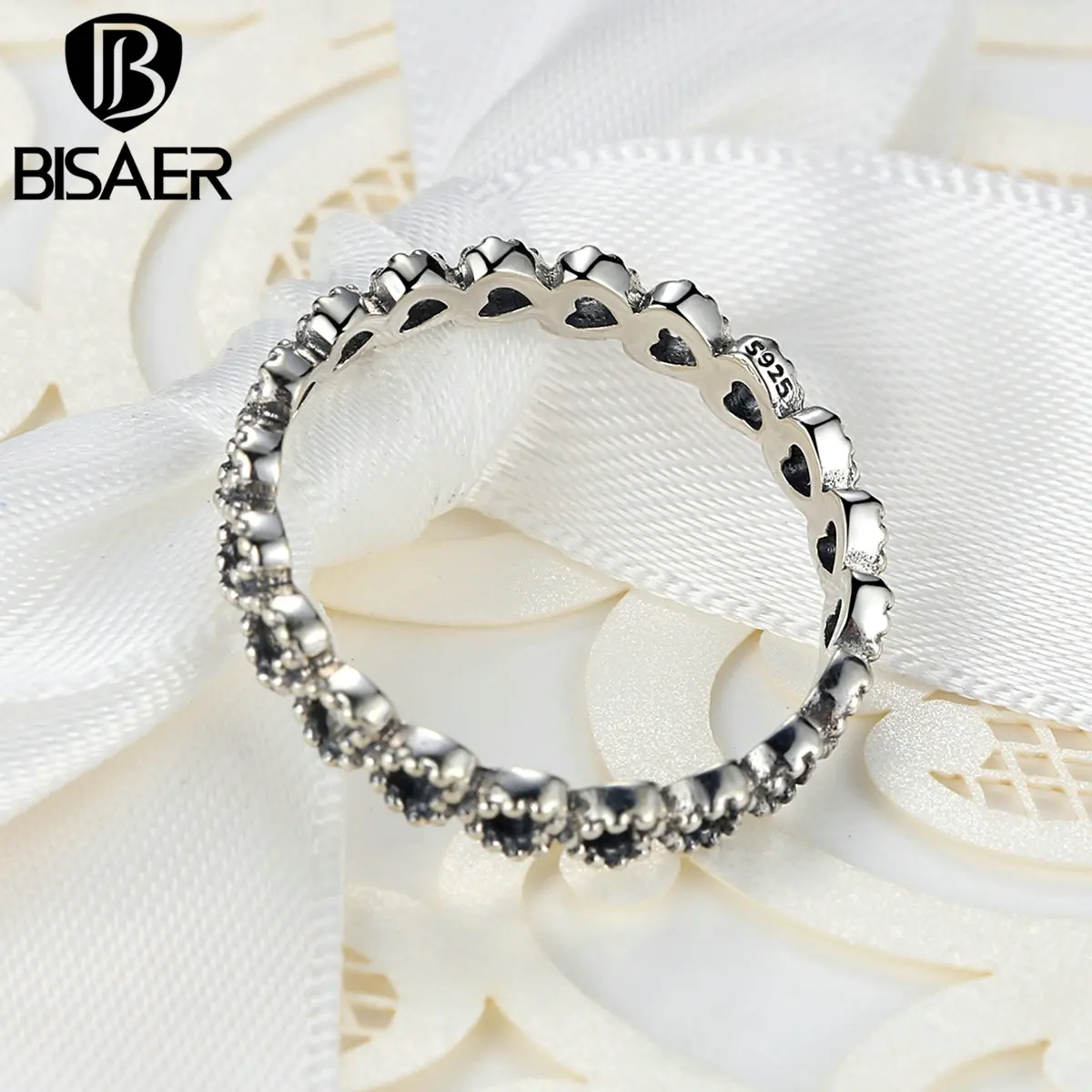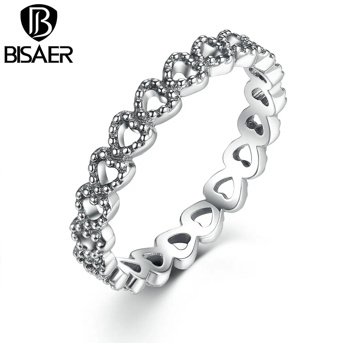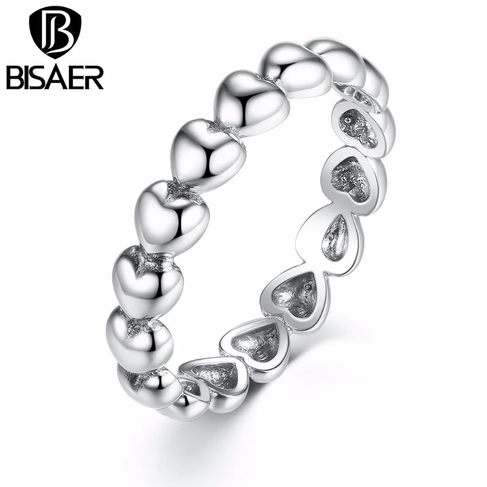 BISAER High Quality Wholesale Silver Heart to Heart Ring AAA Zircon Cheap Rings Women Jewelry Drops WEU7218
