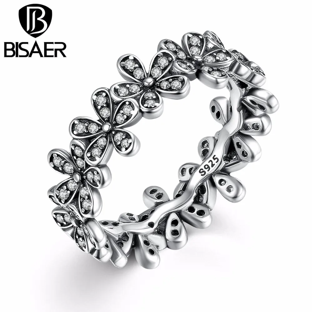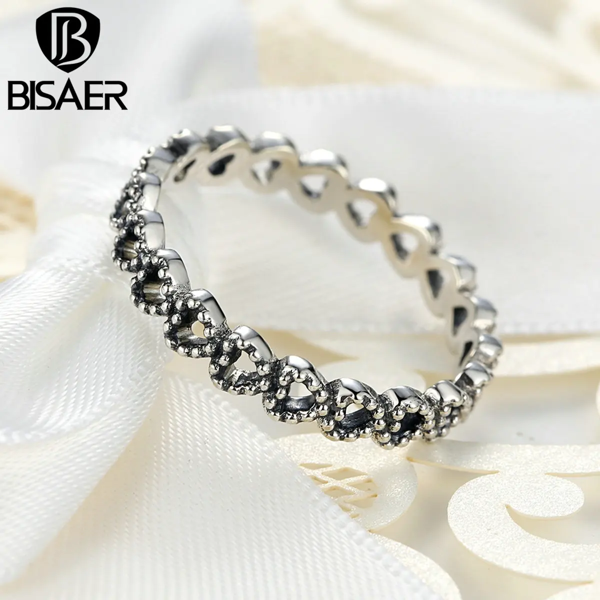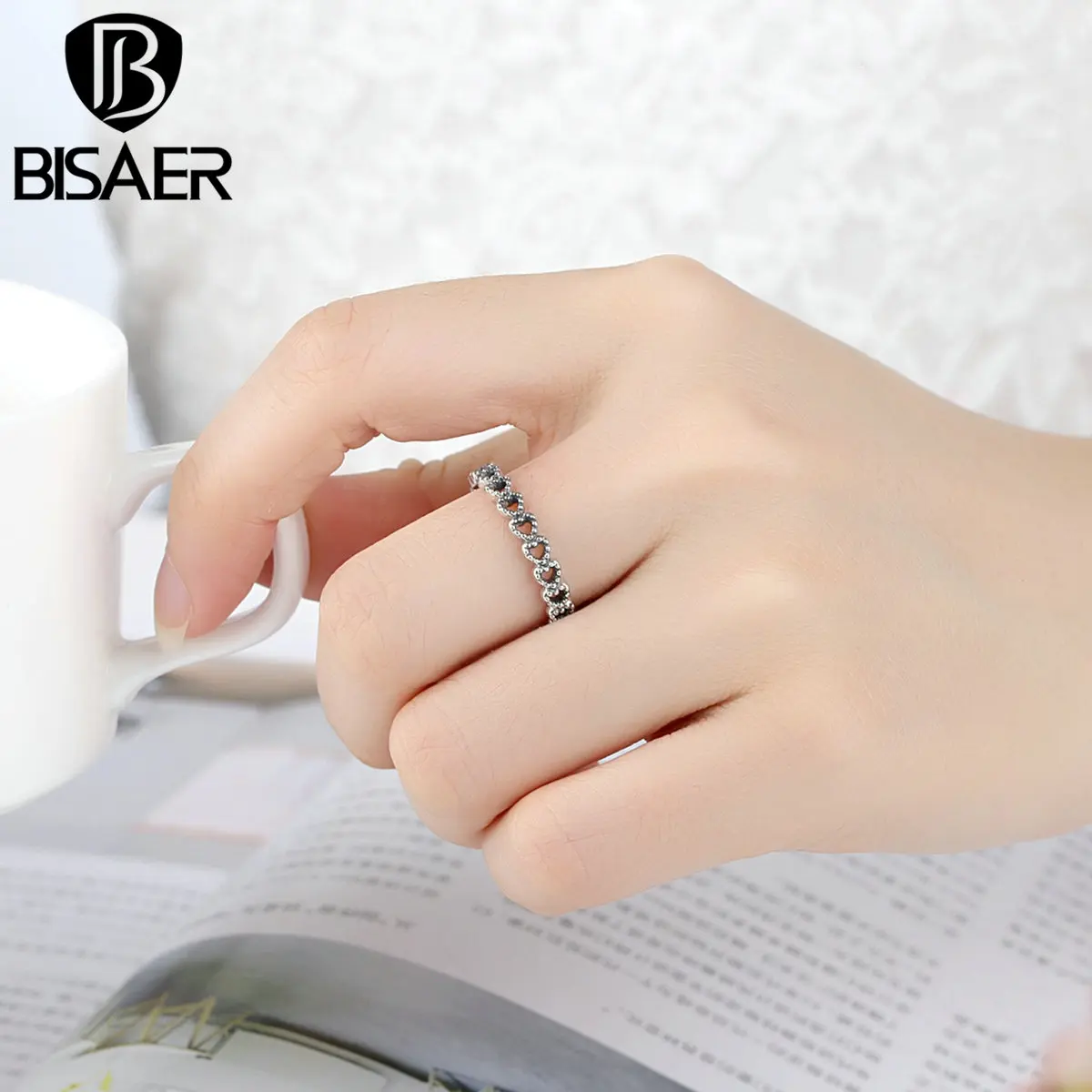 BISAER High Quality Wholesale Silver Heart to Heart Ring AAA Zircon Cheap Rings Women Jewelry Drops WEU7218