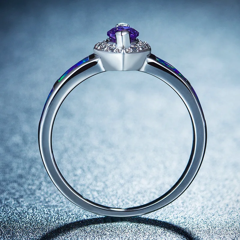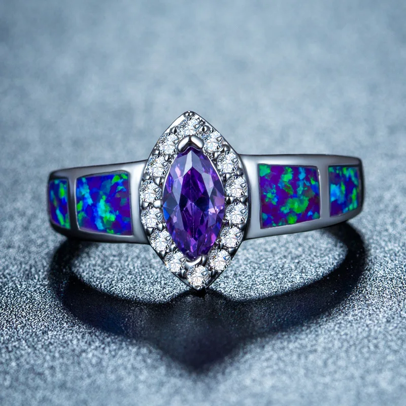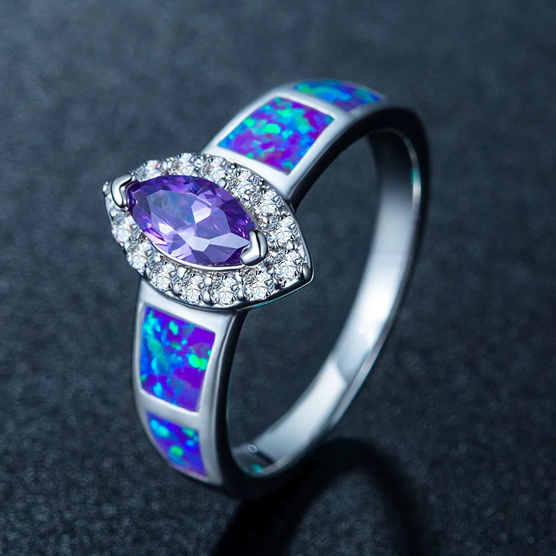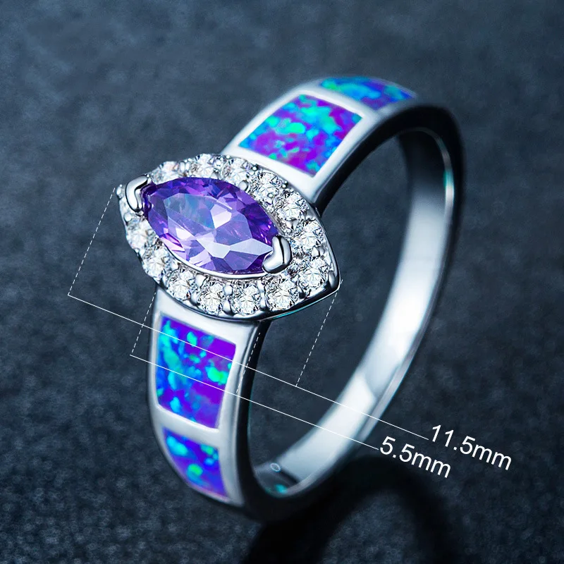 Wholesale Beautiful Cute Simple Jewelry blue Fire Opal cz Champagne Crystal from Swarovski Ring For Women Christmas gifts