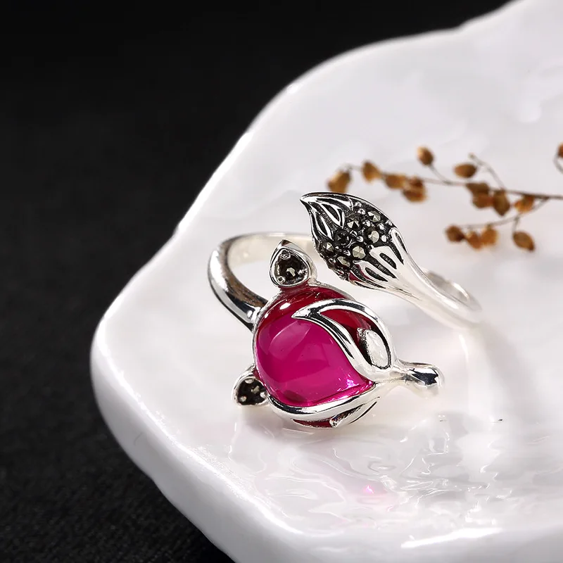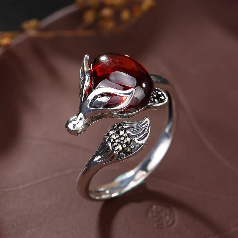 Women 925 Sterling Silver Rings Fox Ruby Natural Stone Ruby Ring Jewelry For Women Jewelry