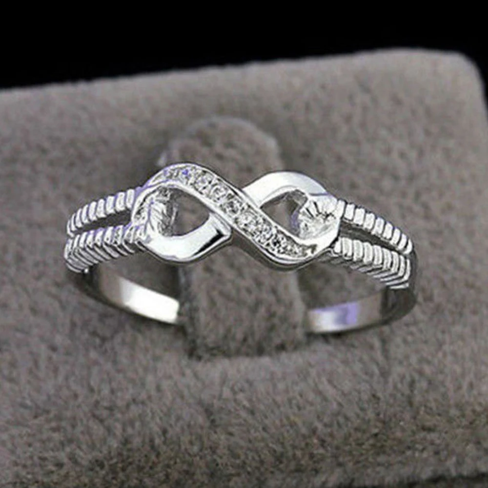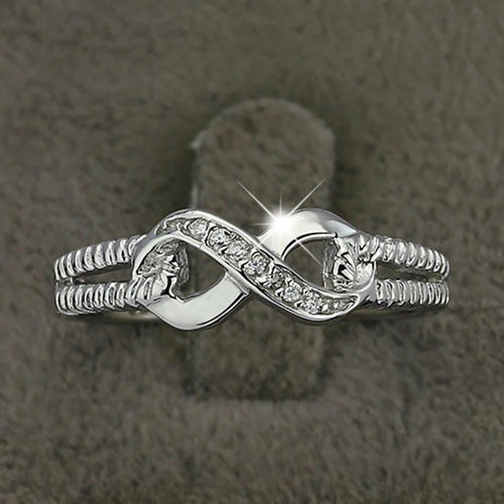 Women Silver Rings Infinity Symb Knot Rings Number 8 Design Anniversary Wedding Ring Jewelry for Bride Girl Gift