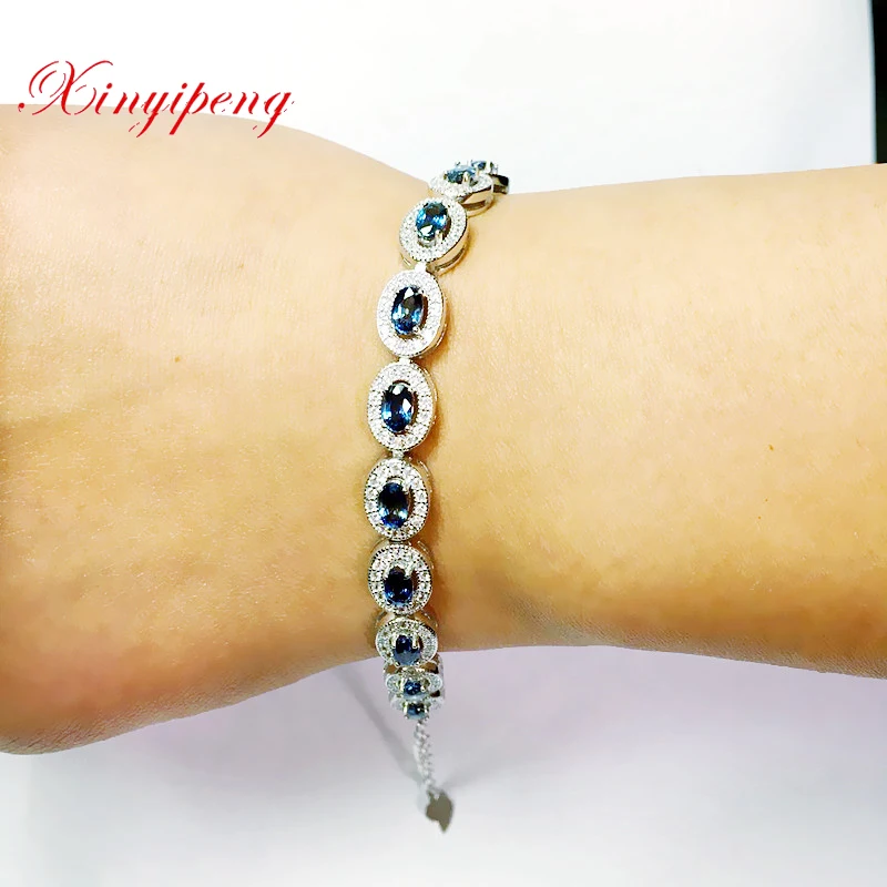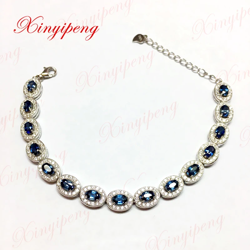 Xin yi peng 925 silver inlaid natural sapphire bracelet hand string of women's style and generous fashion