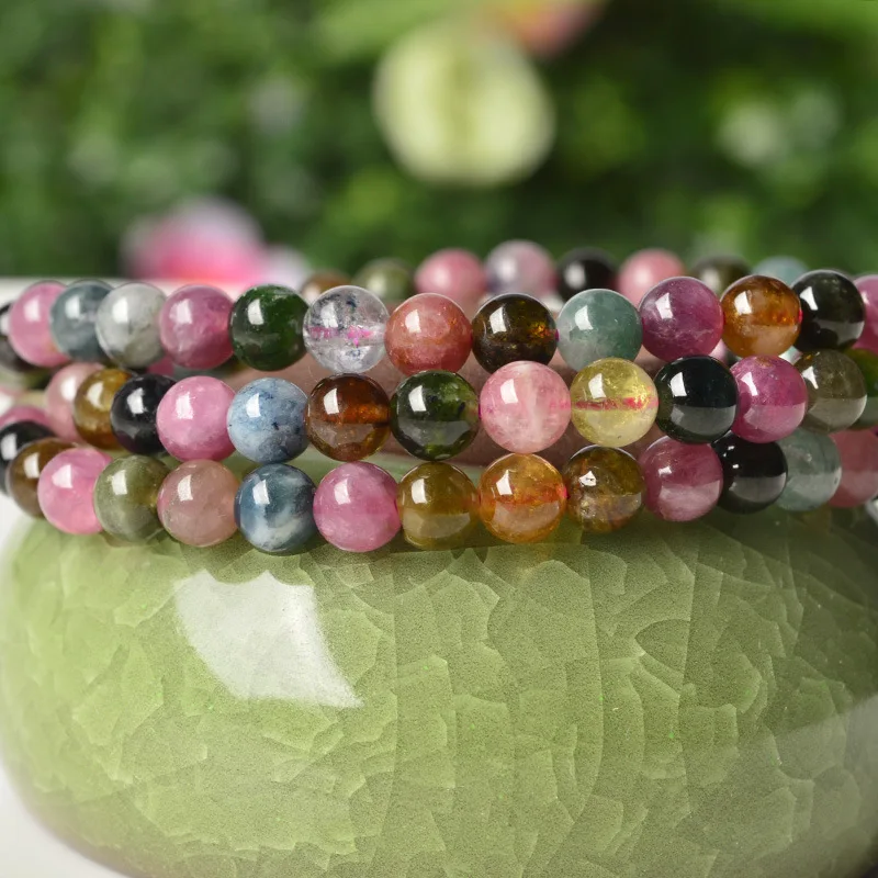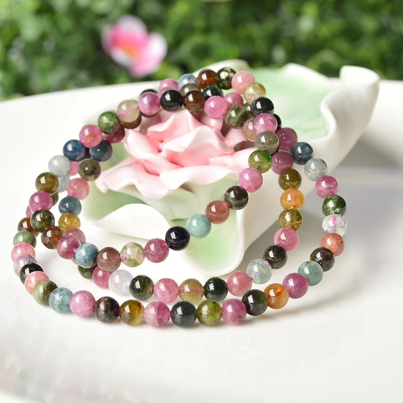 yu xin yuan Exquisite natural five color bracelet, women's style, three rings of tourmaline bracelet