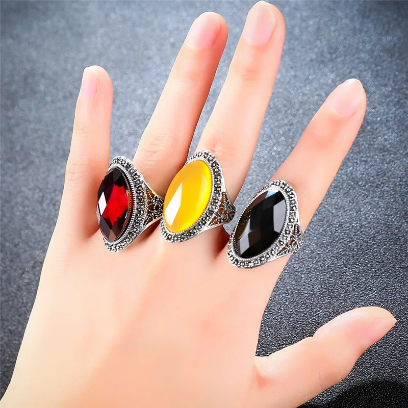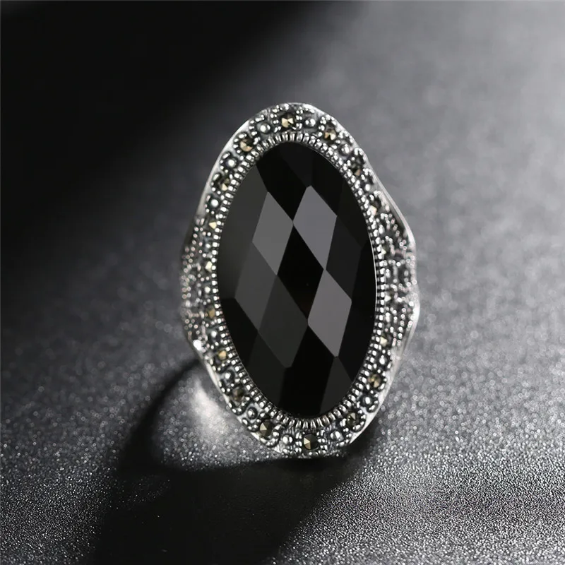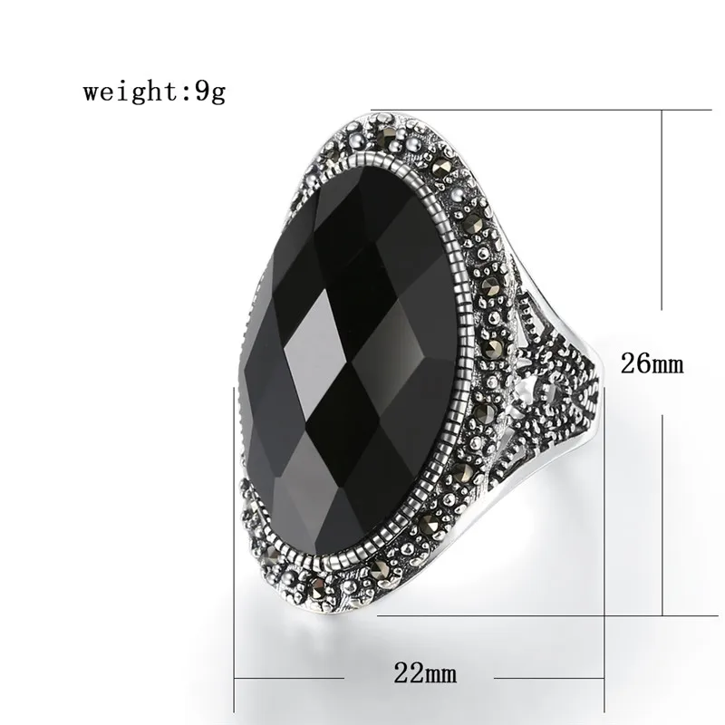 Natural Chalcedony Black Stone Ring Adjustable 925 Sterling Silver Rings for Women Cutting Surface Design Jewelry