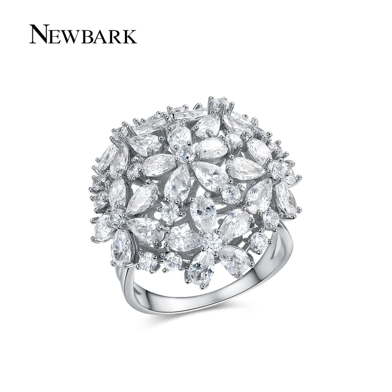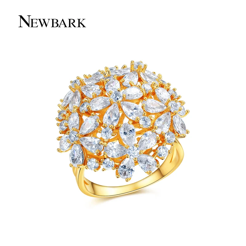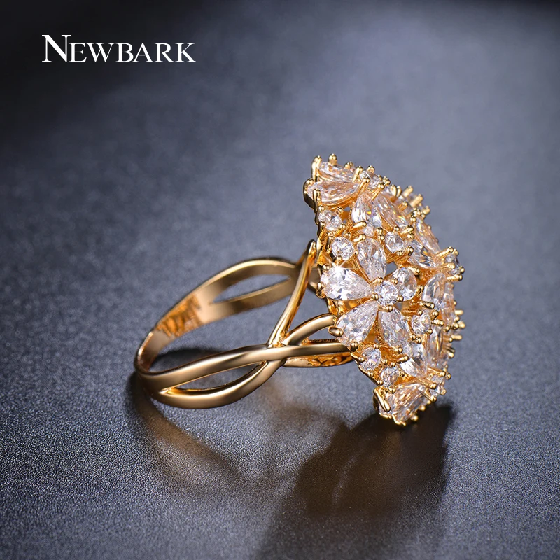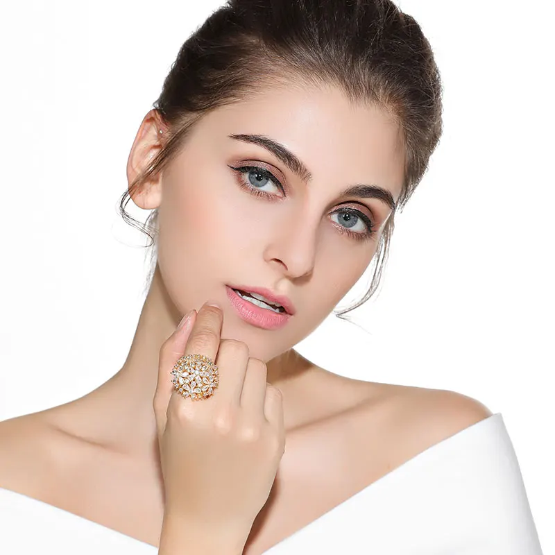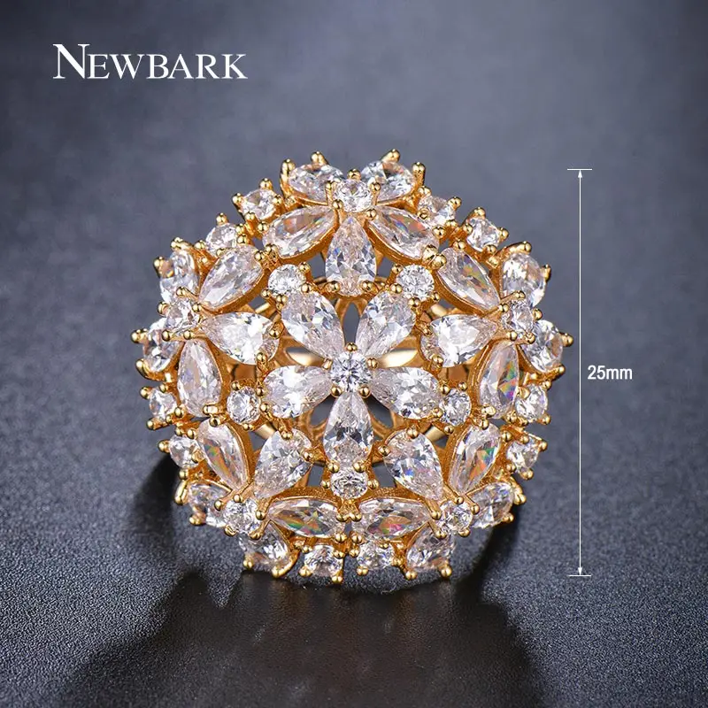 Big Ring Exaggerated Flower Finger Rings Women CZ Jewelry Gold / Silver Color Party Gifts