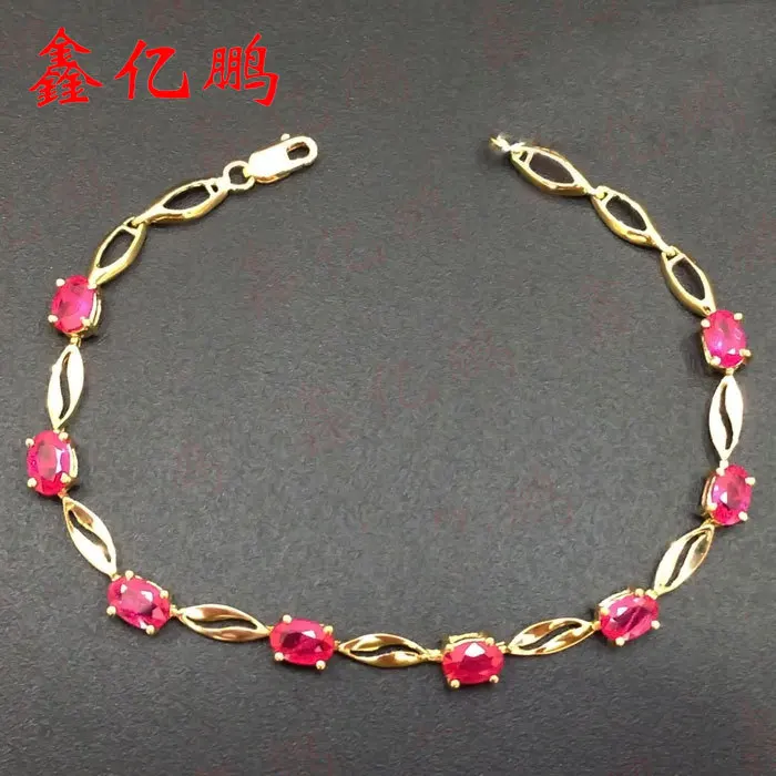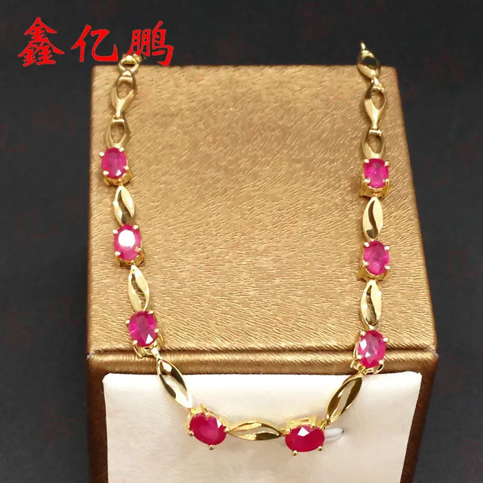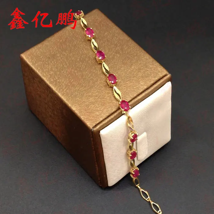 18 k gold inlaid natural ruby bracelet with female Fashion contracted and precious treasure Valentine's d wedding jewelry