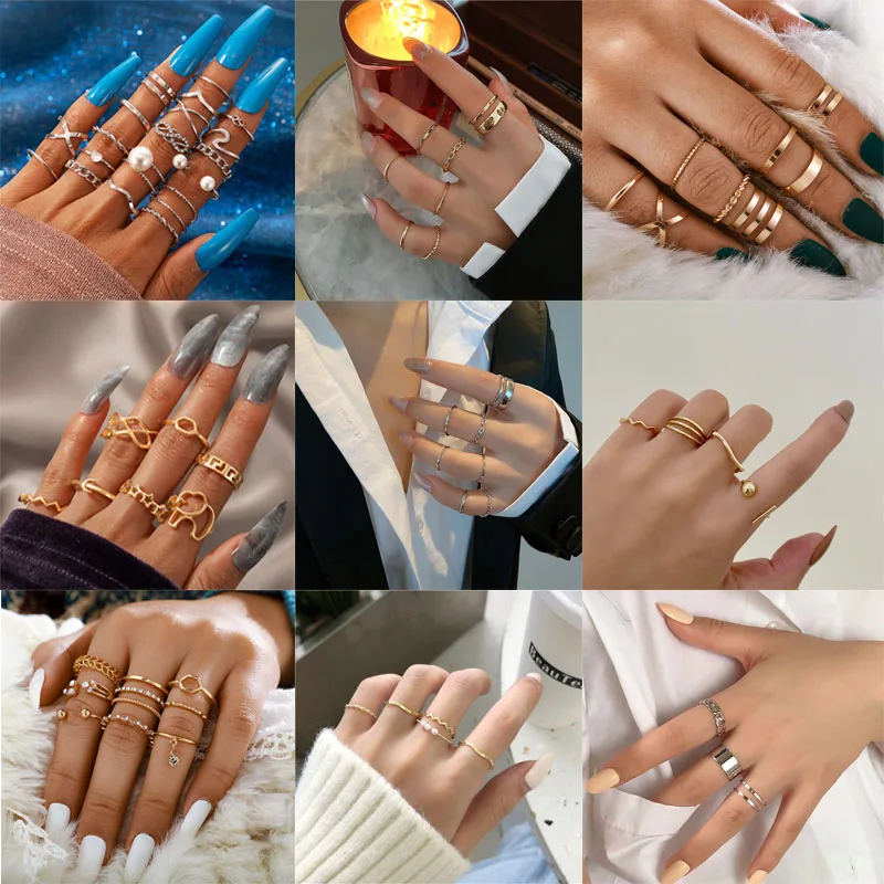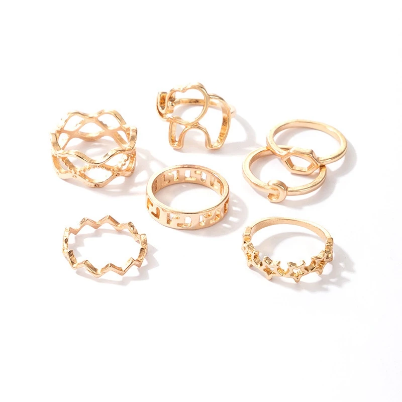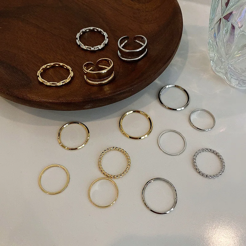 18pcs Jewelry Rings Set Selling Metal Alloy Hollow Round Opening Women Finger Ring For Girl Lady Party Wedding Gifts