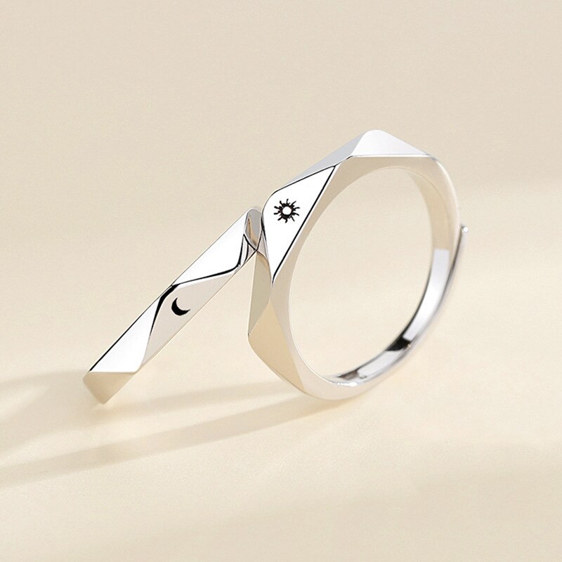 2 Pcs Sun Moon Lover Couple Rings Simple Opening Ring For Couple Men Women Wedding Engagement Promise Valentine's Day Jewelry