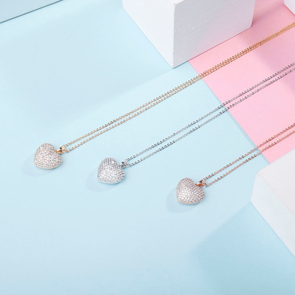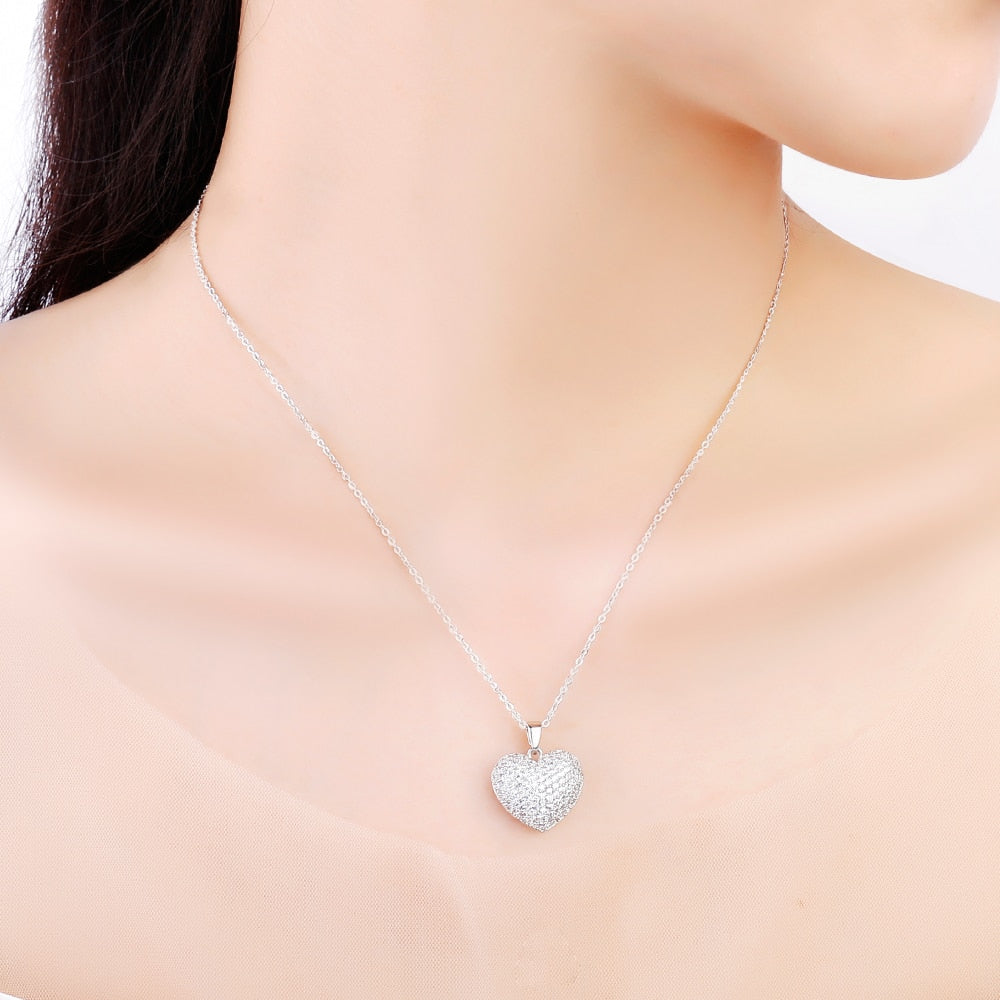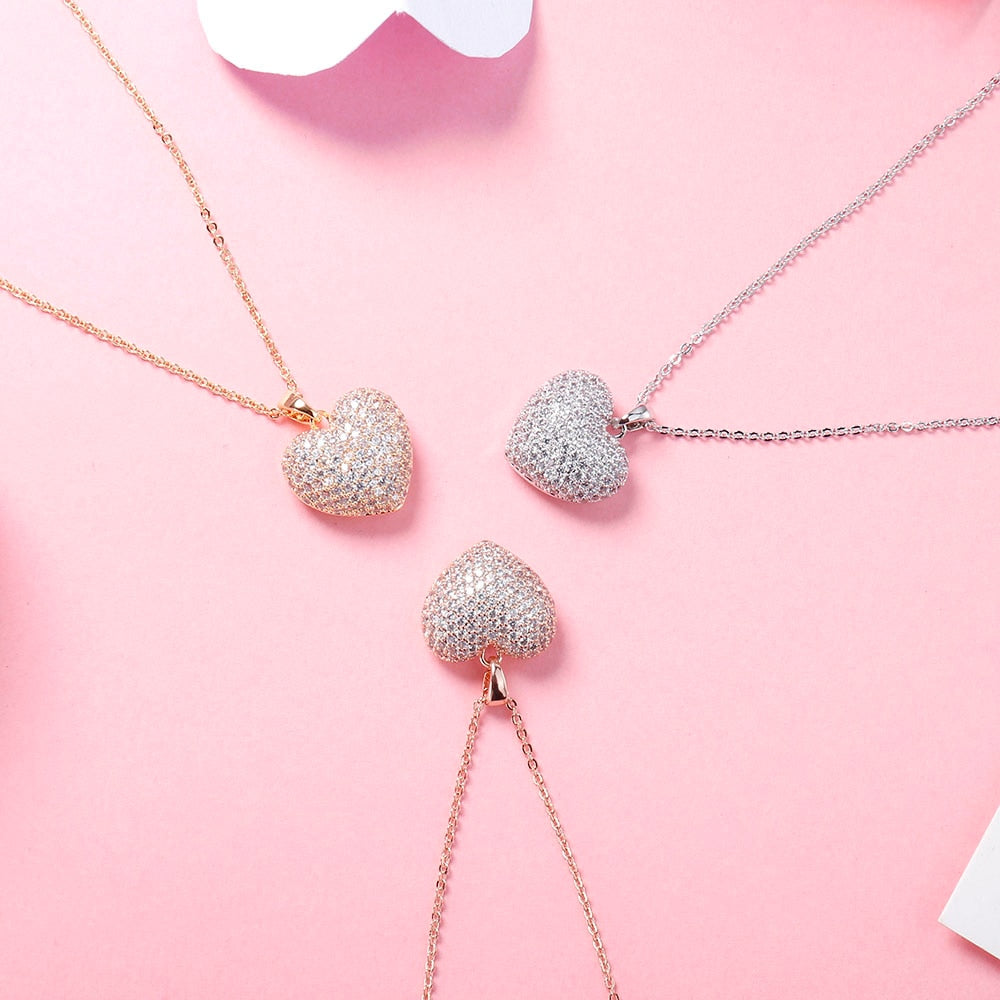 Product points: : 3D Heart Pendant With CZ Cubic Zirconia Choker Necklace