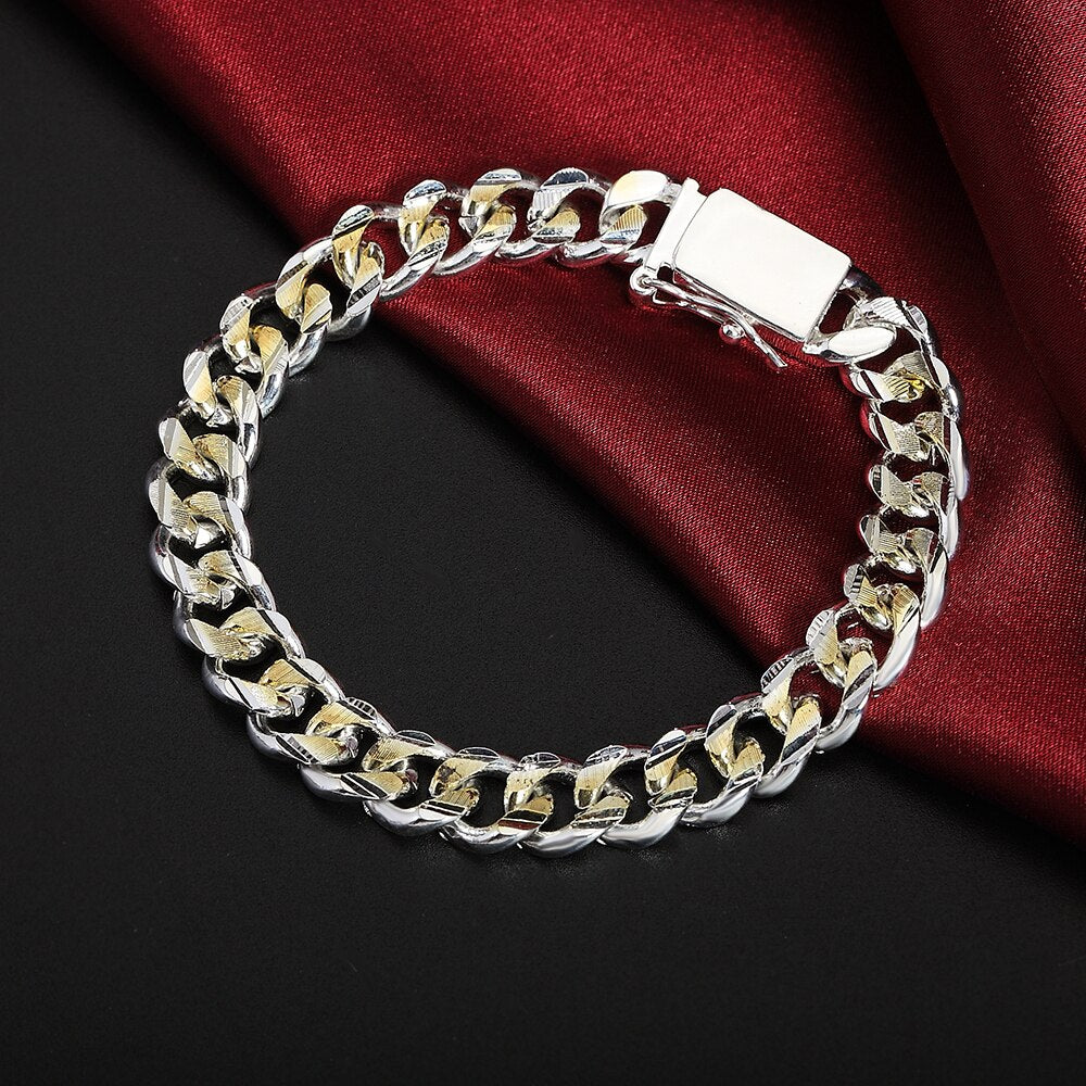 925 sterling silver classic 10MM chain Square buckle gold Bracelet for women man Wedding party gifts temperament Jewelry