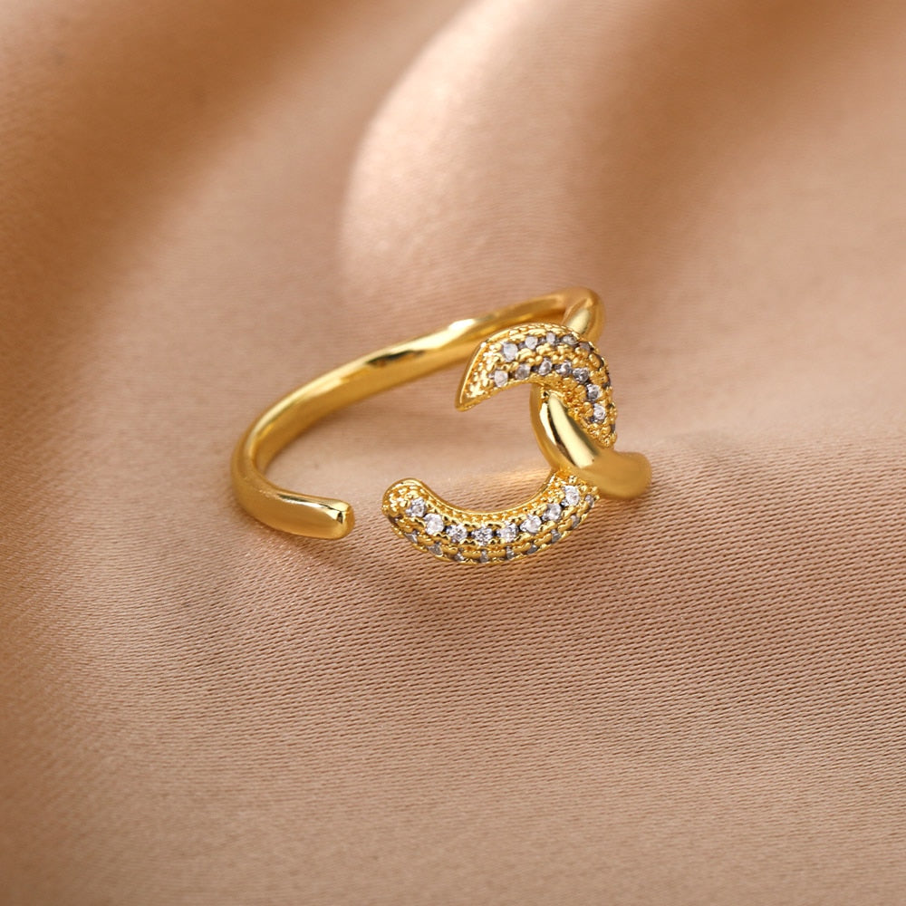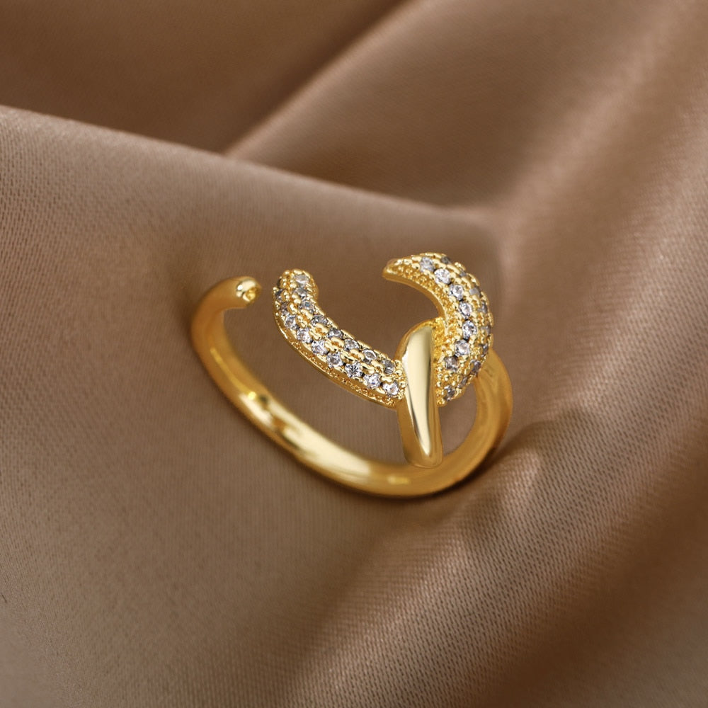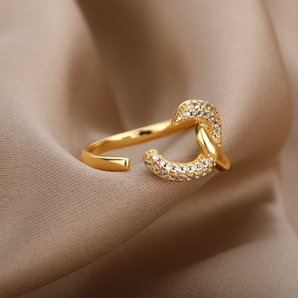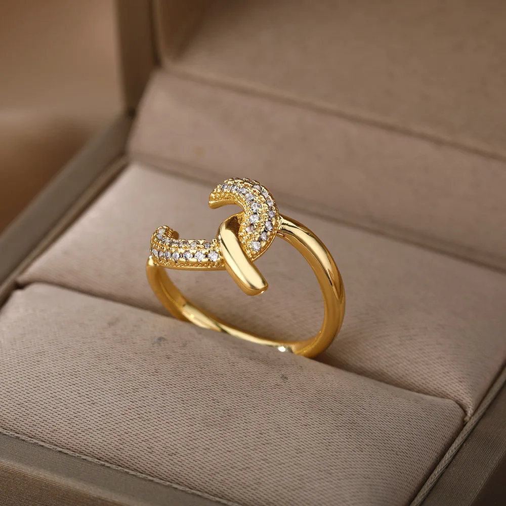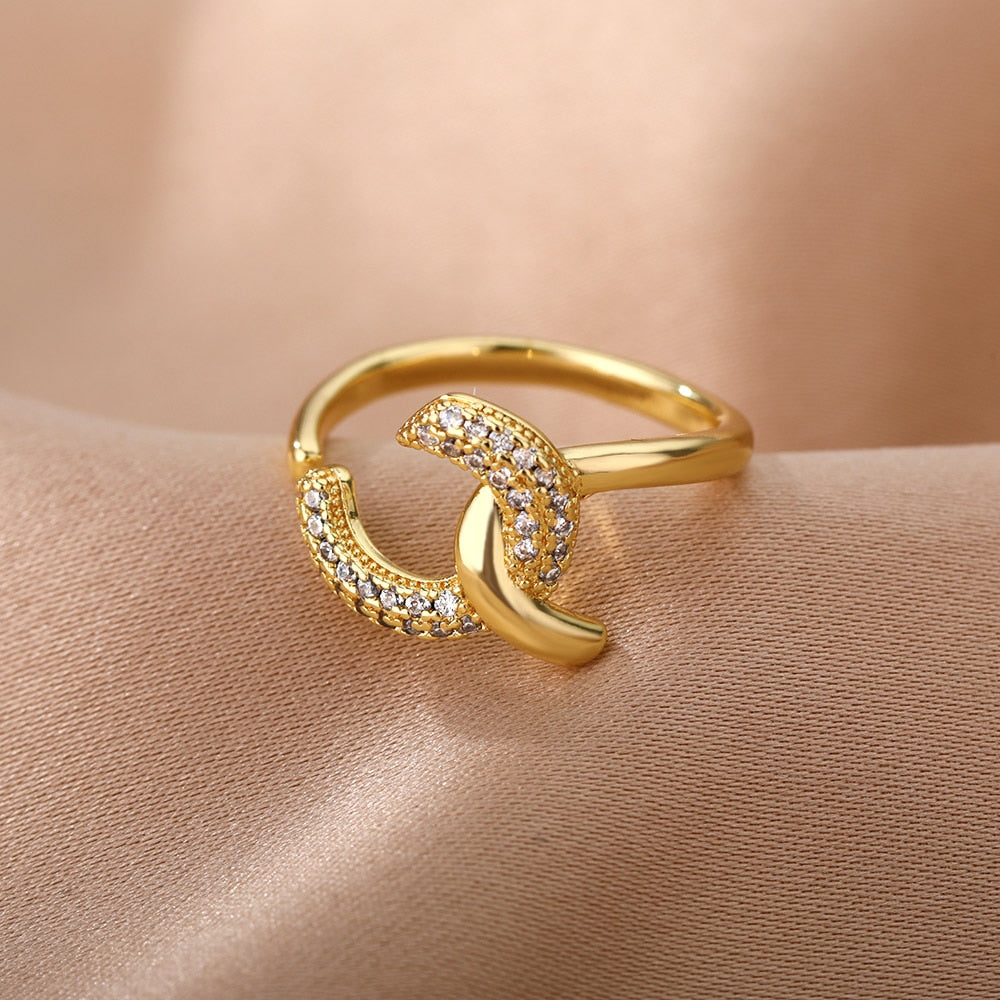 Adjustable Open Zircon Circle Rings For Women Stainless Steel Geometric Irregular Crystal Ring Female Wedding Jewelry Gift