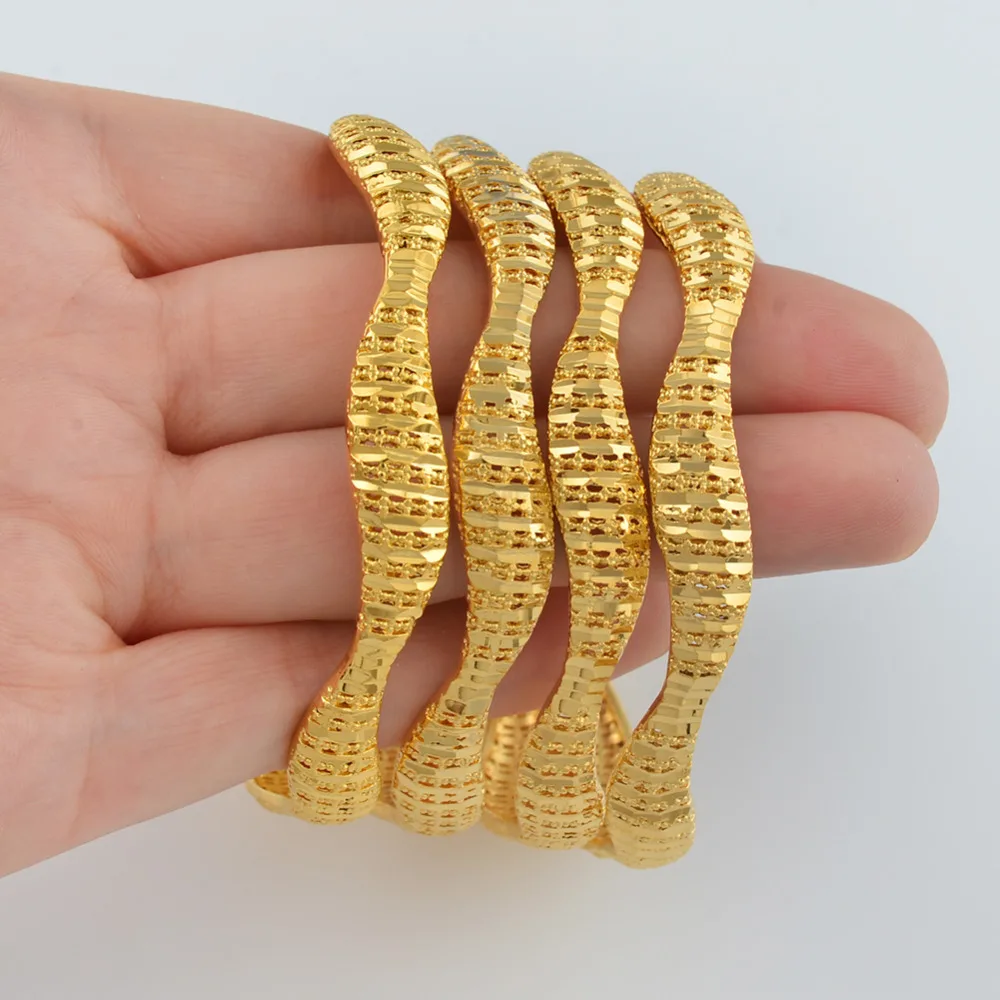 4Pieces/Lot Wholesale Arab Bangle Ethiopian Gold Color Bracelets Middle East Dubai Luxury Wedding Jewelry African #086406
