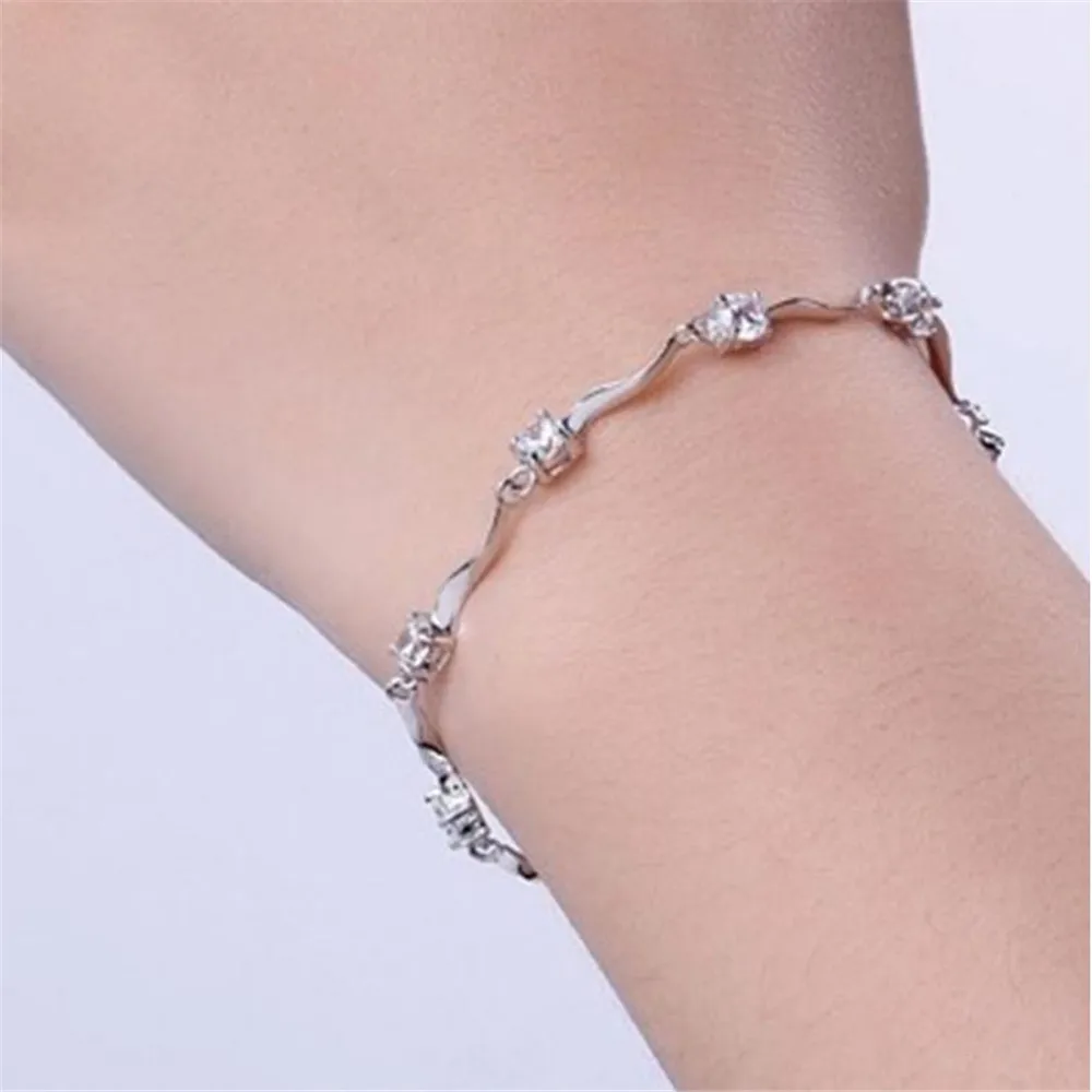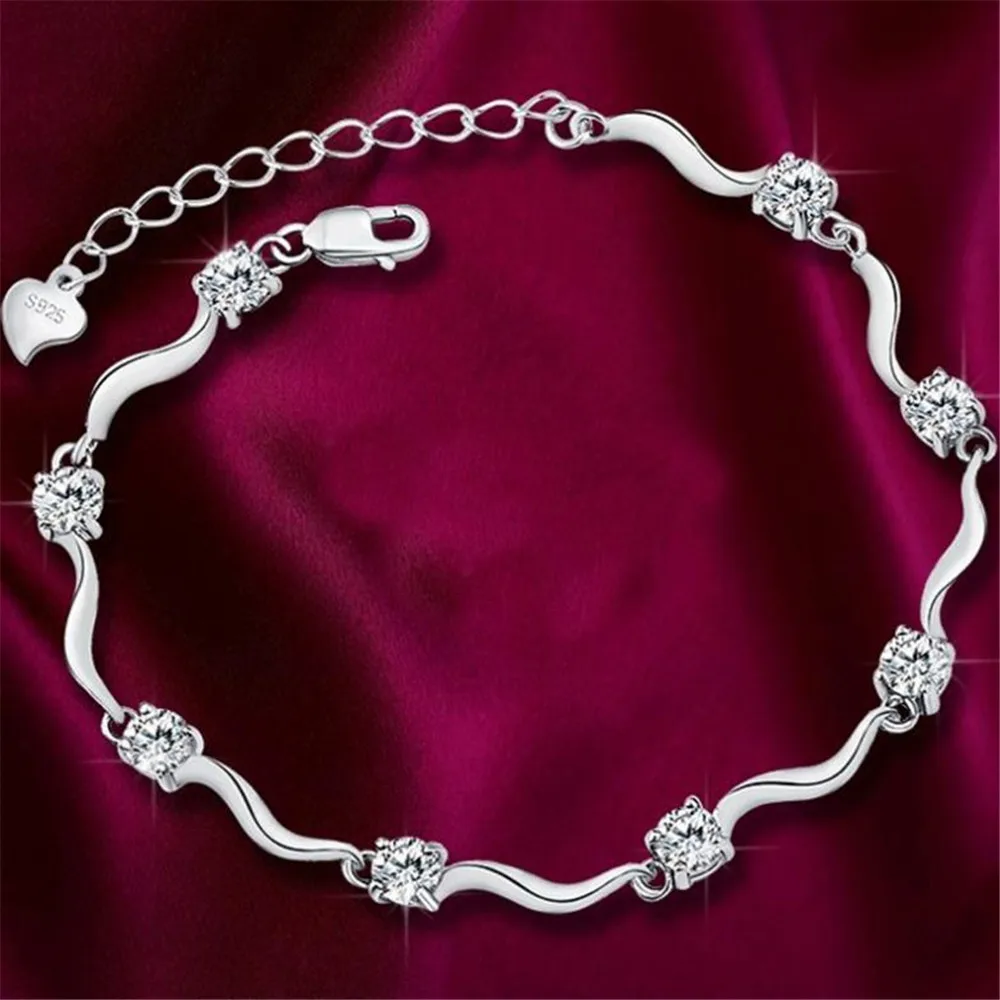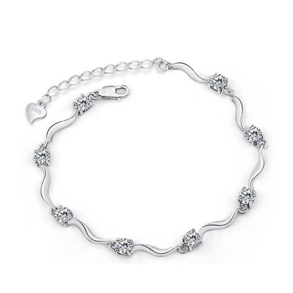 Fashion 925 Sterling Silver hearts Purple Round Diamond Bracelet Women's Adjustable Length Weddings Jewelry Bracelets