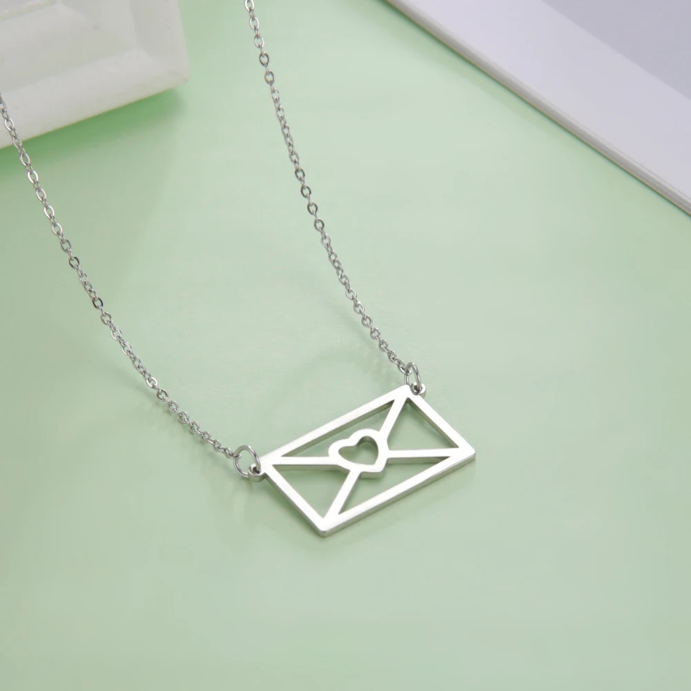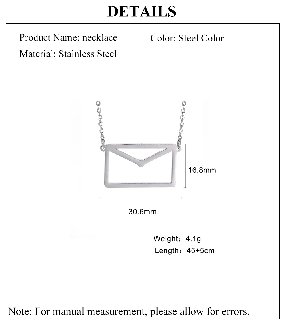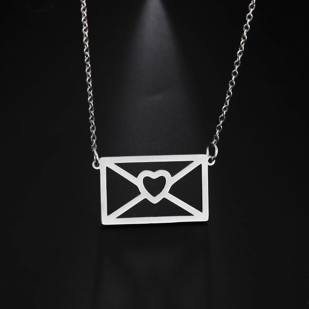 Cazador Letter Envelope Pendant Necklaces for Women Friends Stainless Steel Choker Jewelry Party Wedding Valentine's Day Gifts