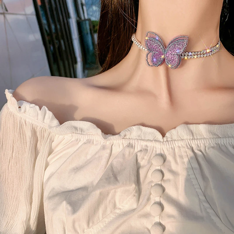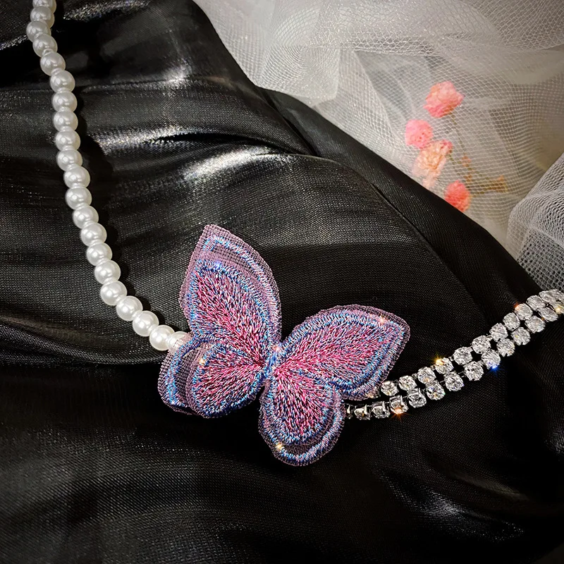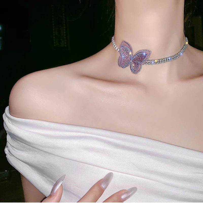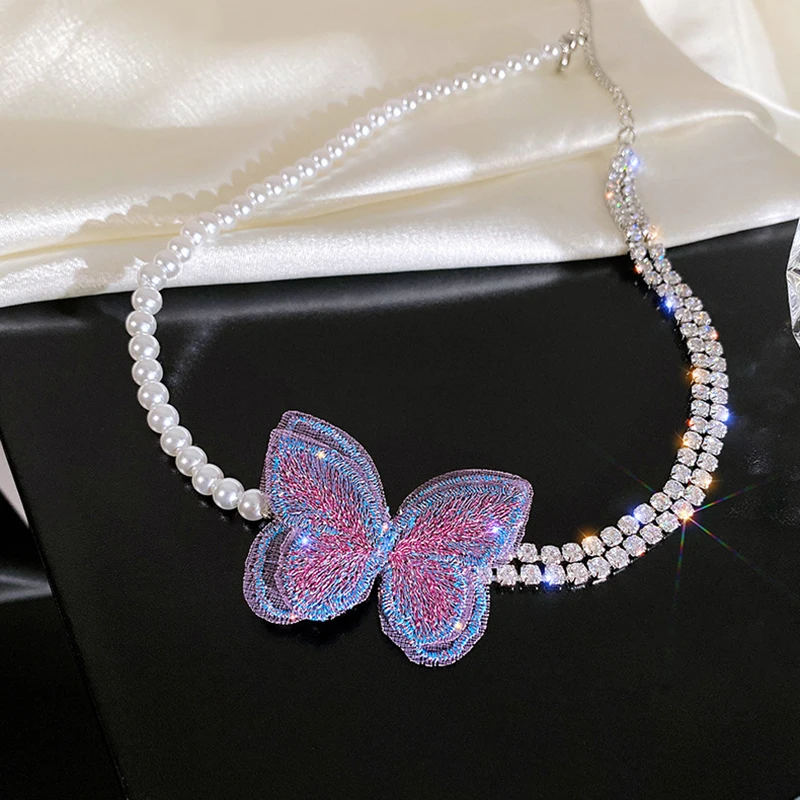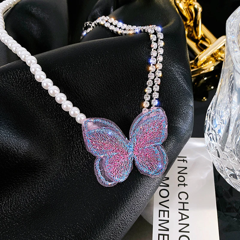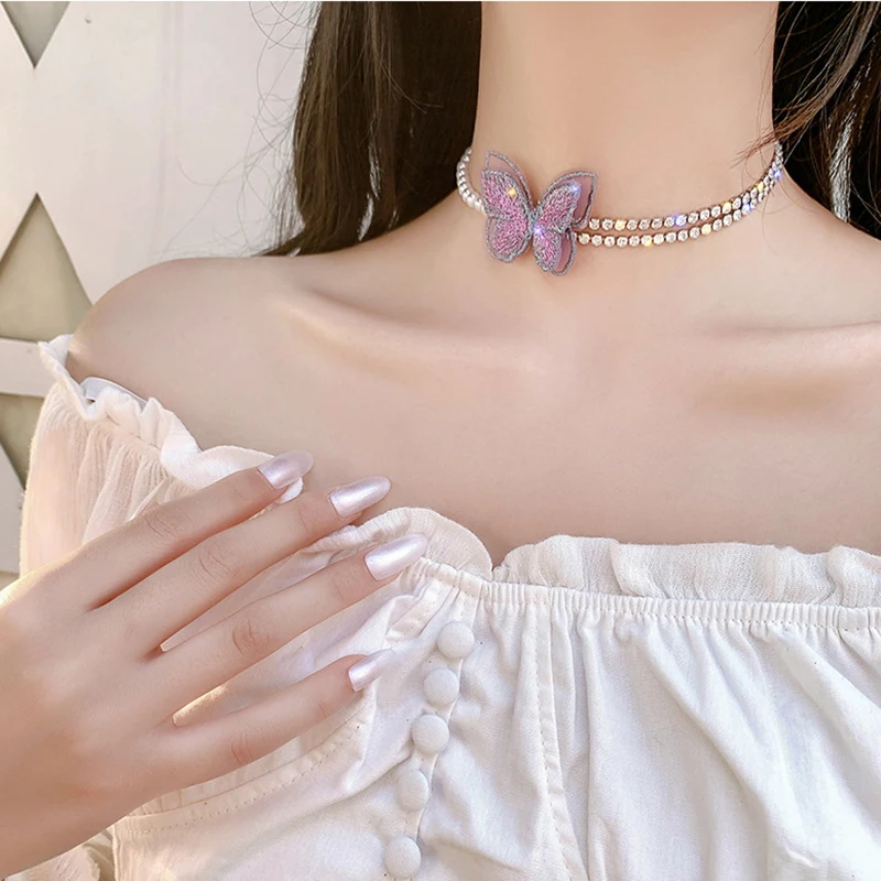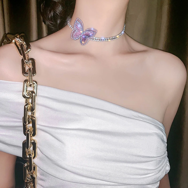 Chinese Style Butterfly Necklaces Women Shiny Wedding Jewelry Design Elegant Charm Vintage Multilayer Clavicle Chain
