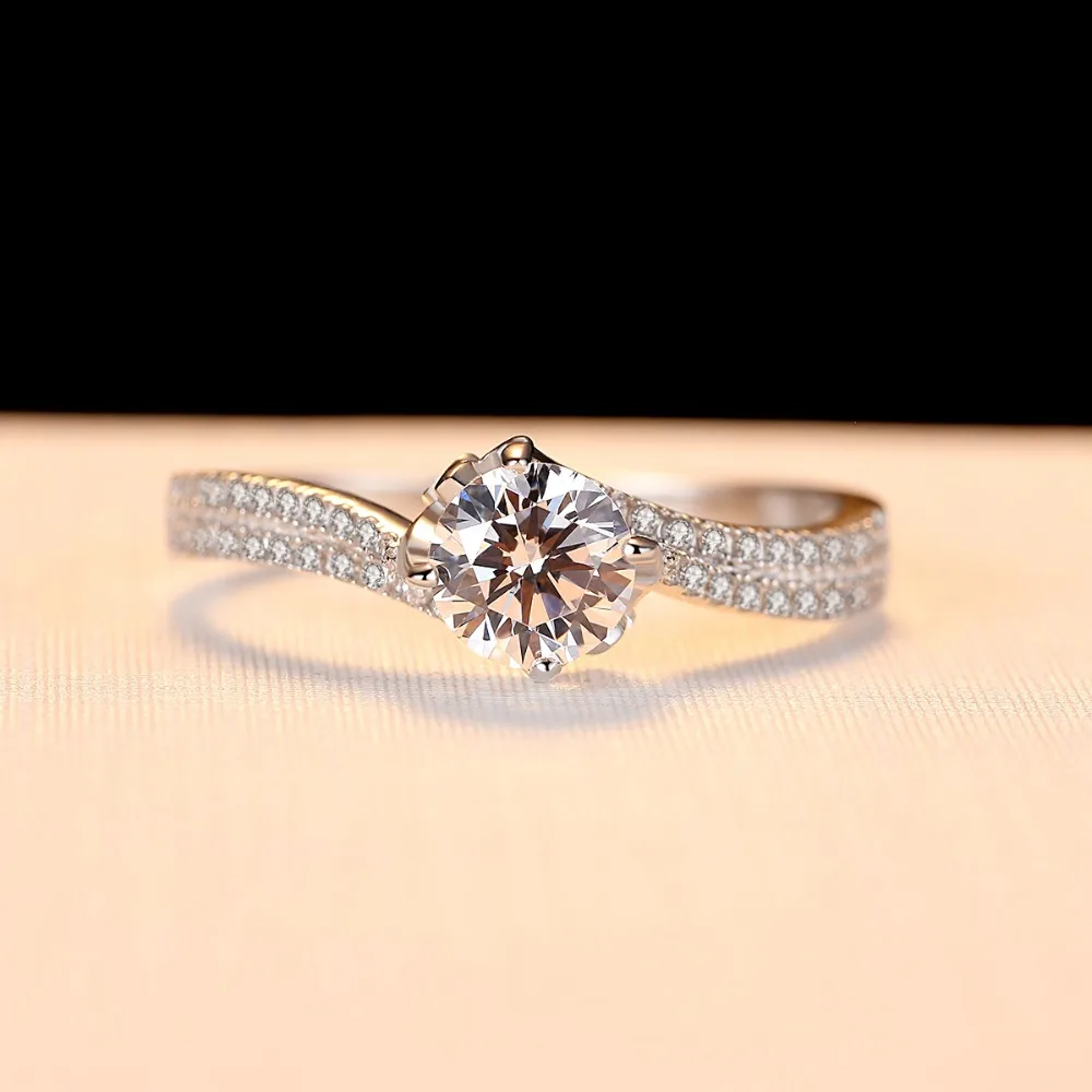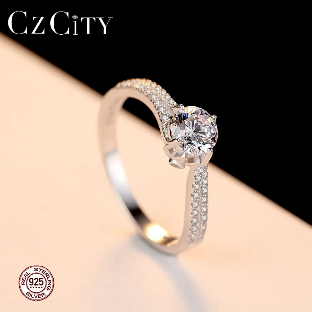 Wedding Rings for Women Tiny CZ Paved with One Carat Zircon 925 Sterling Silver Engagement Finger Ring Bague Femme SR0023