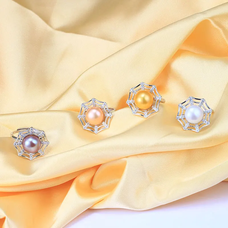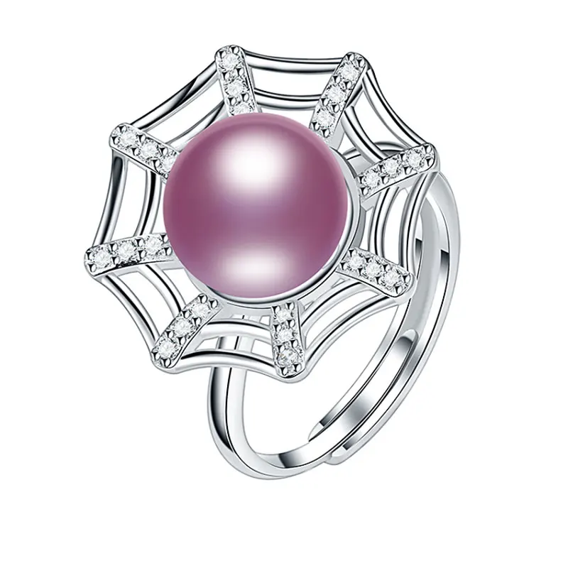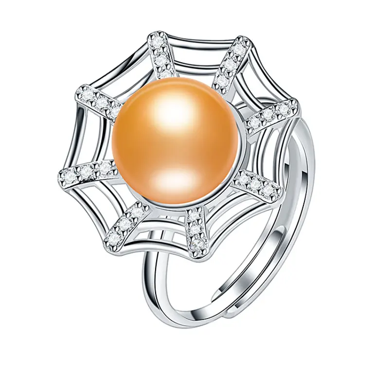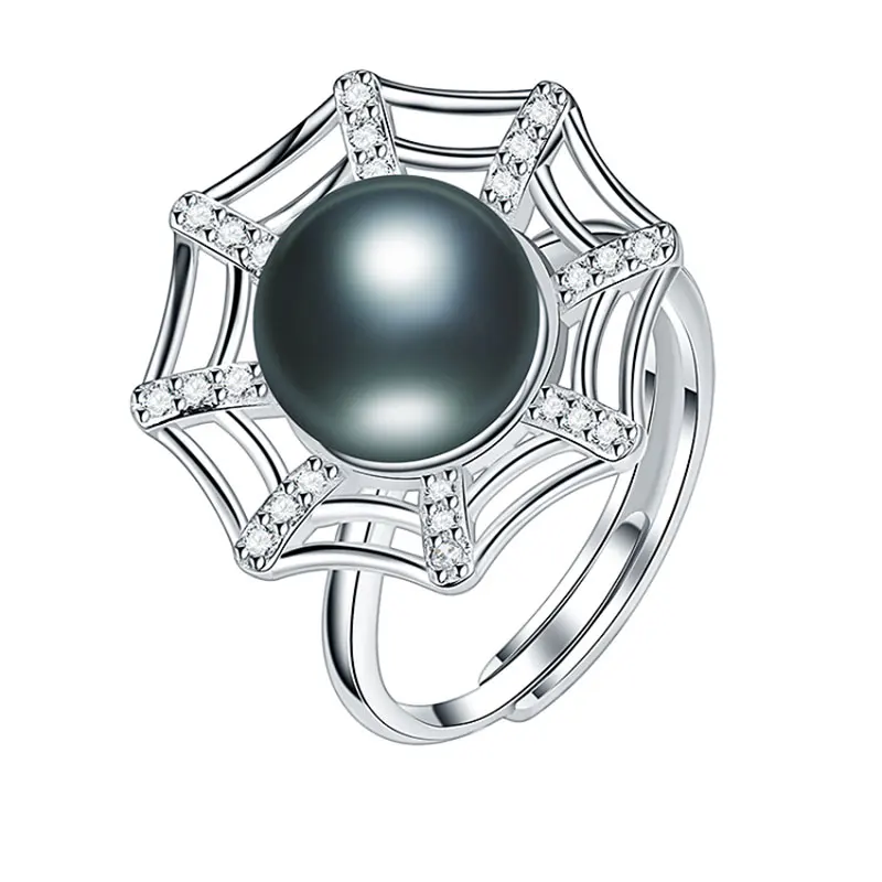 Creative Spider Web Pearl Ring 10-10.5mm Big Size 100% Real Pearl Ring for Women Girl Wedding Daily Pearl