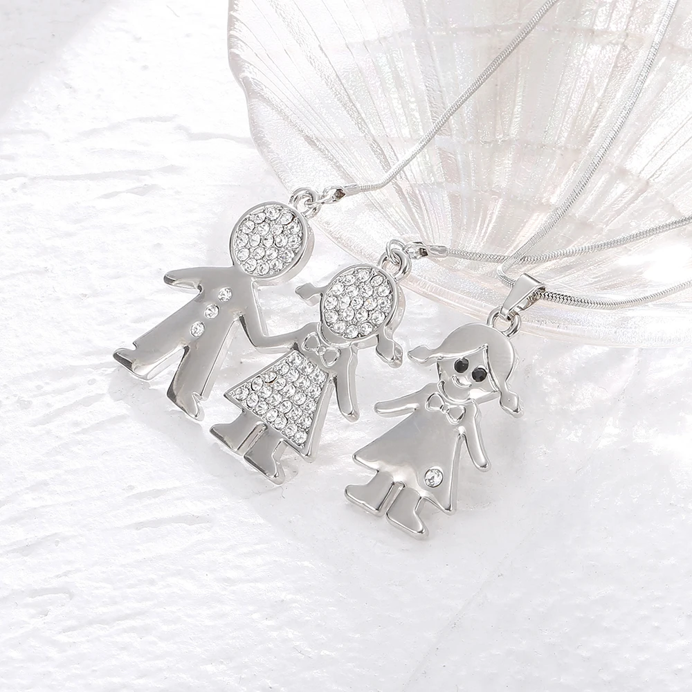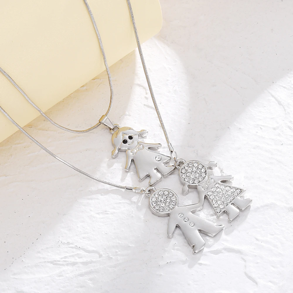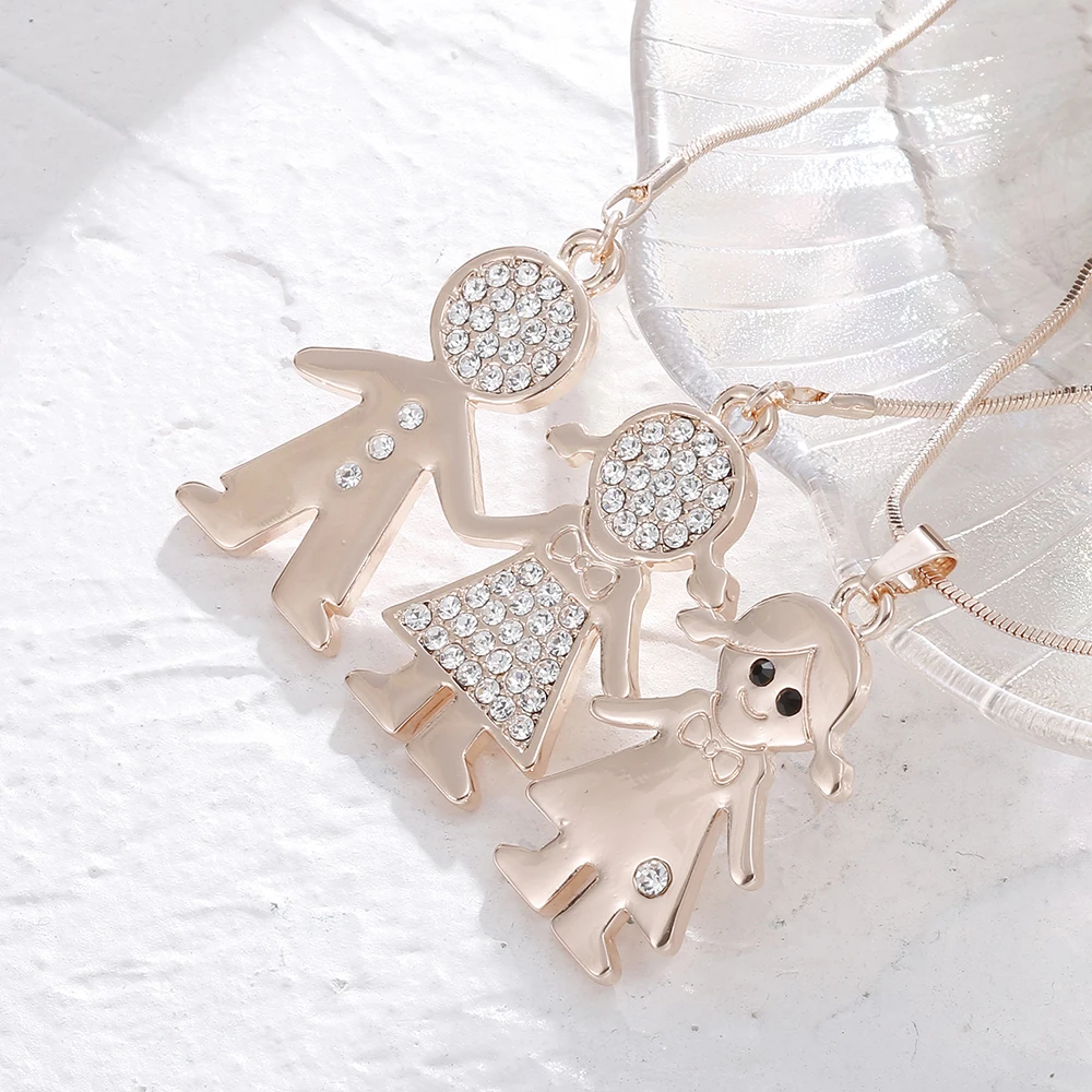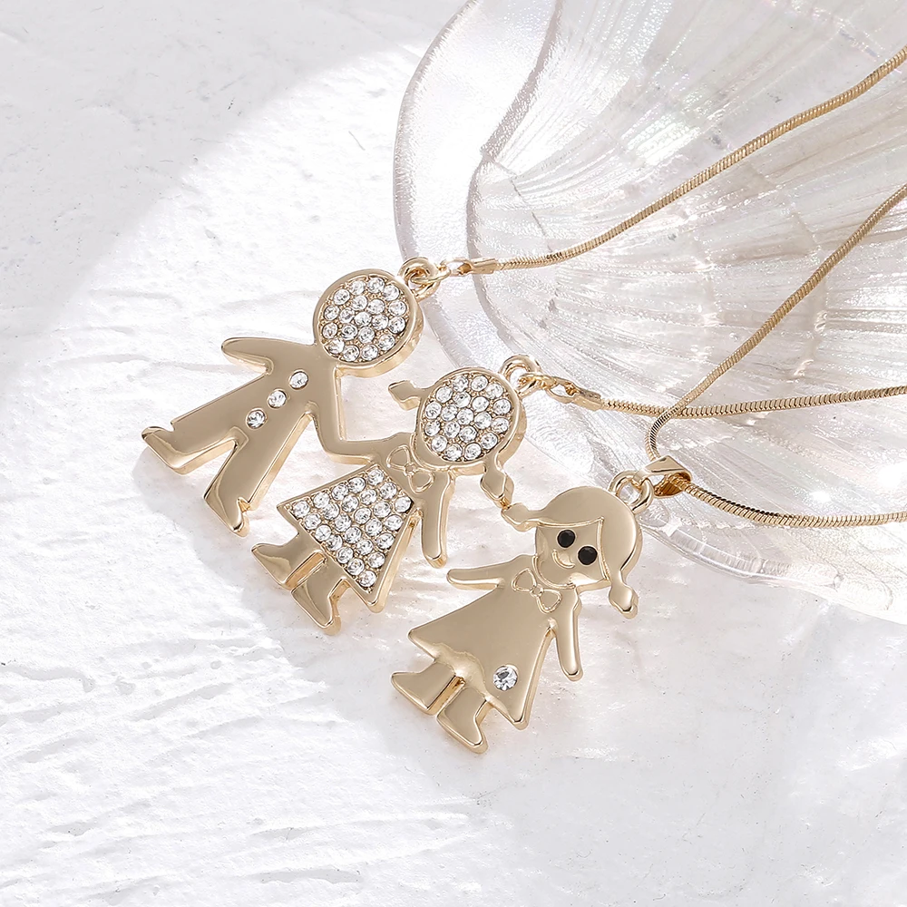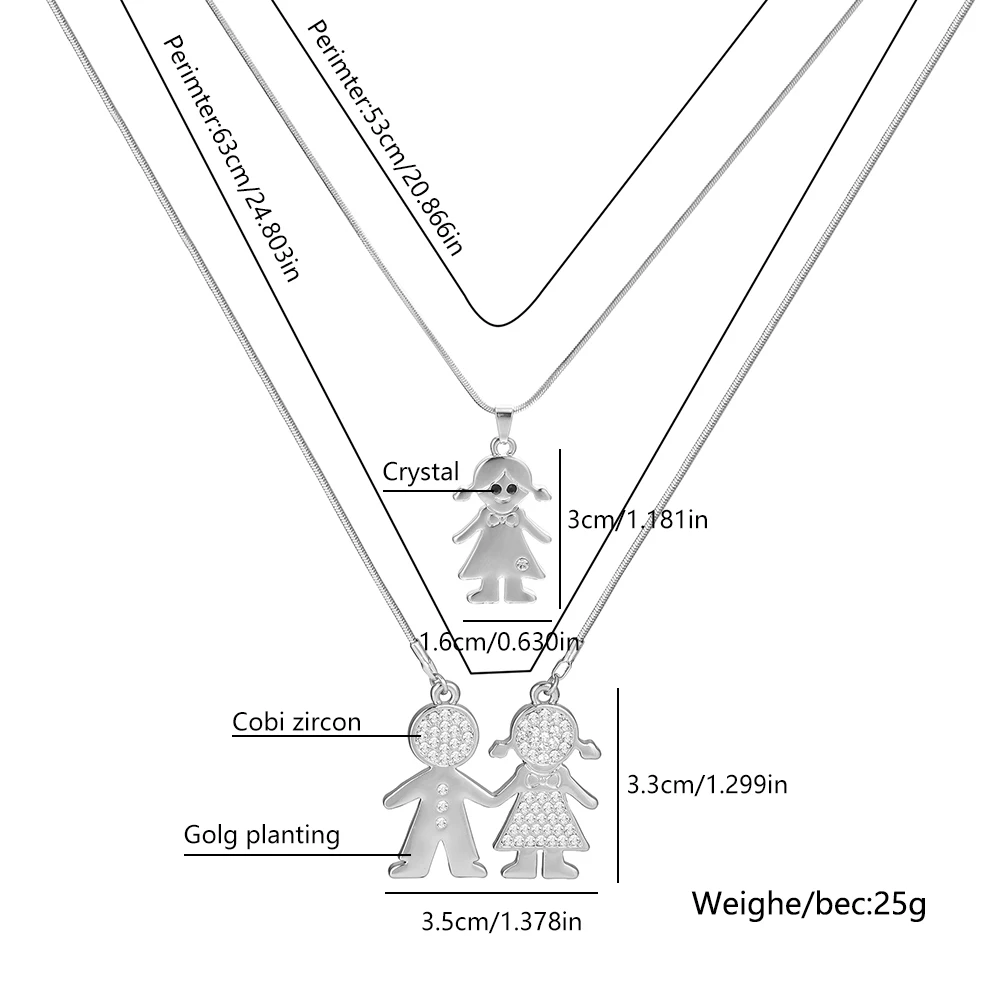 Double Layer Gold Plate Cubic Zirconia Crystal Family Necklace Gift For Women Choker Party Wedding School Jewelry New