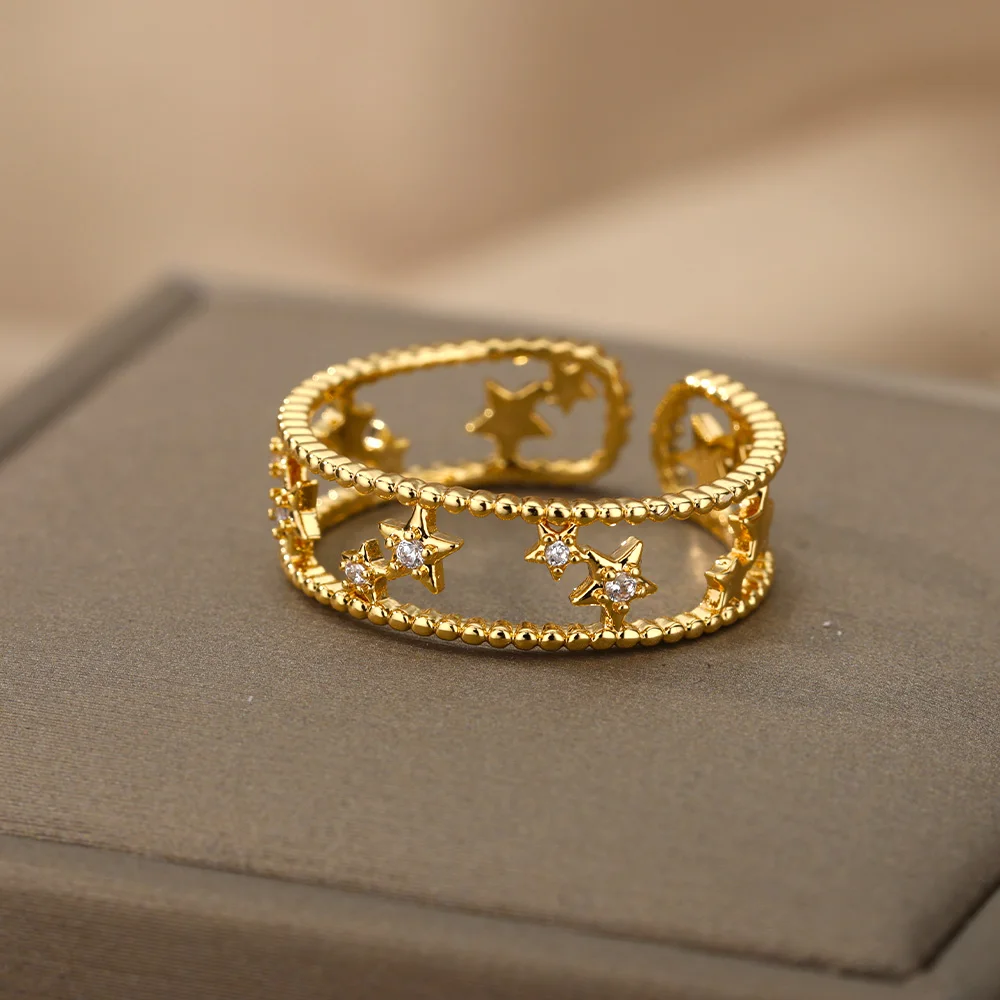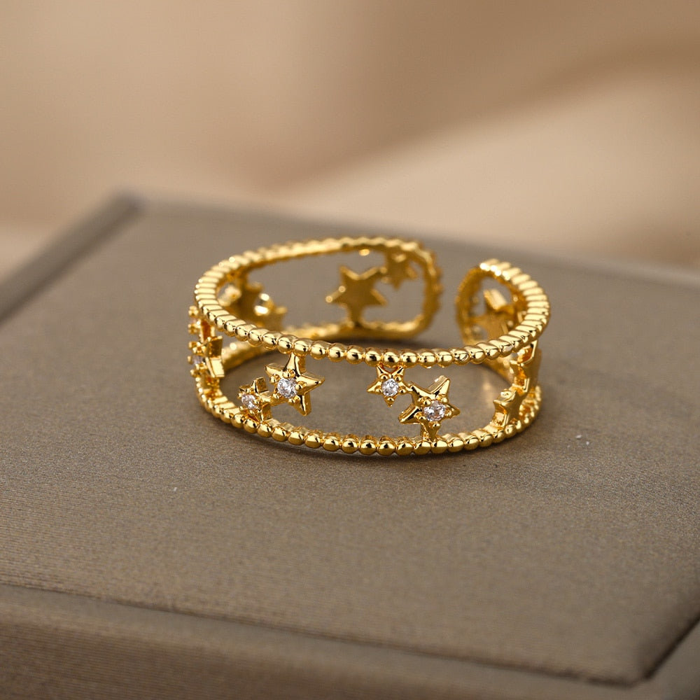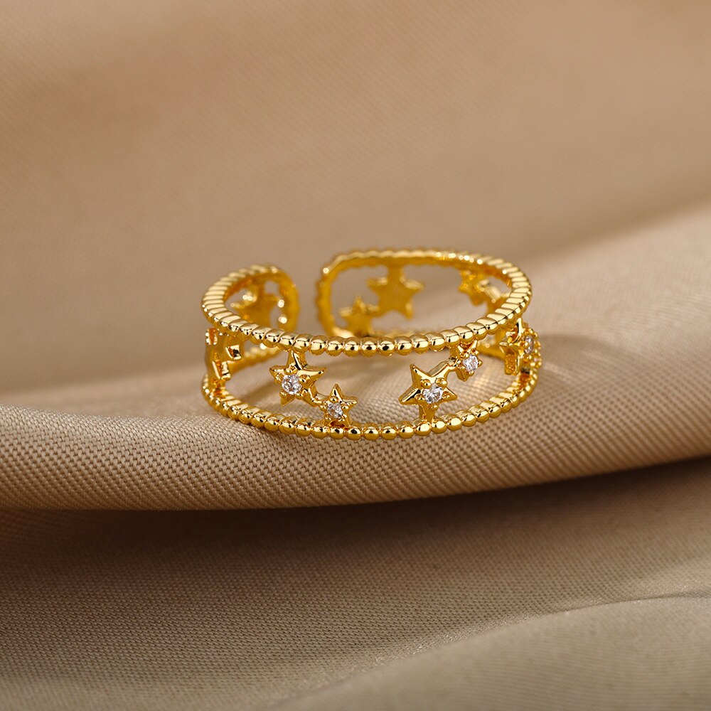 Double Layer Zircon Star Rings for Women Stainless Steel Open Adjustable Stars Couple Ring CZ Wedding Aesthetic Jewerly anillos