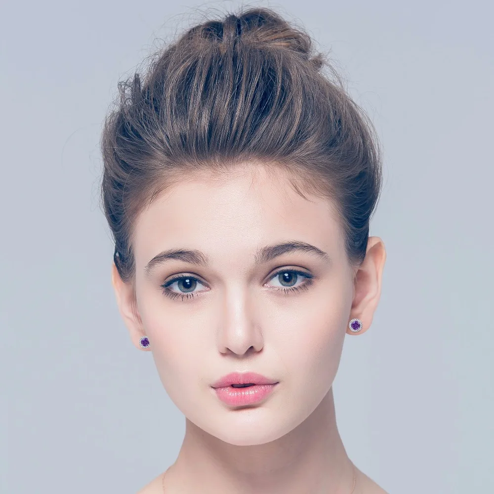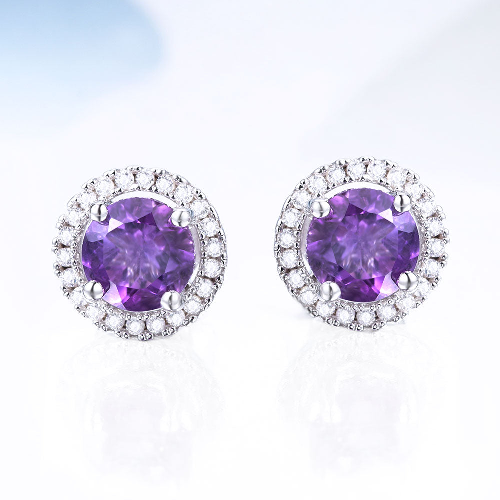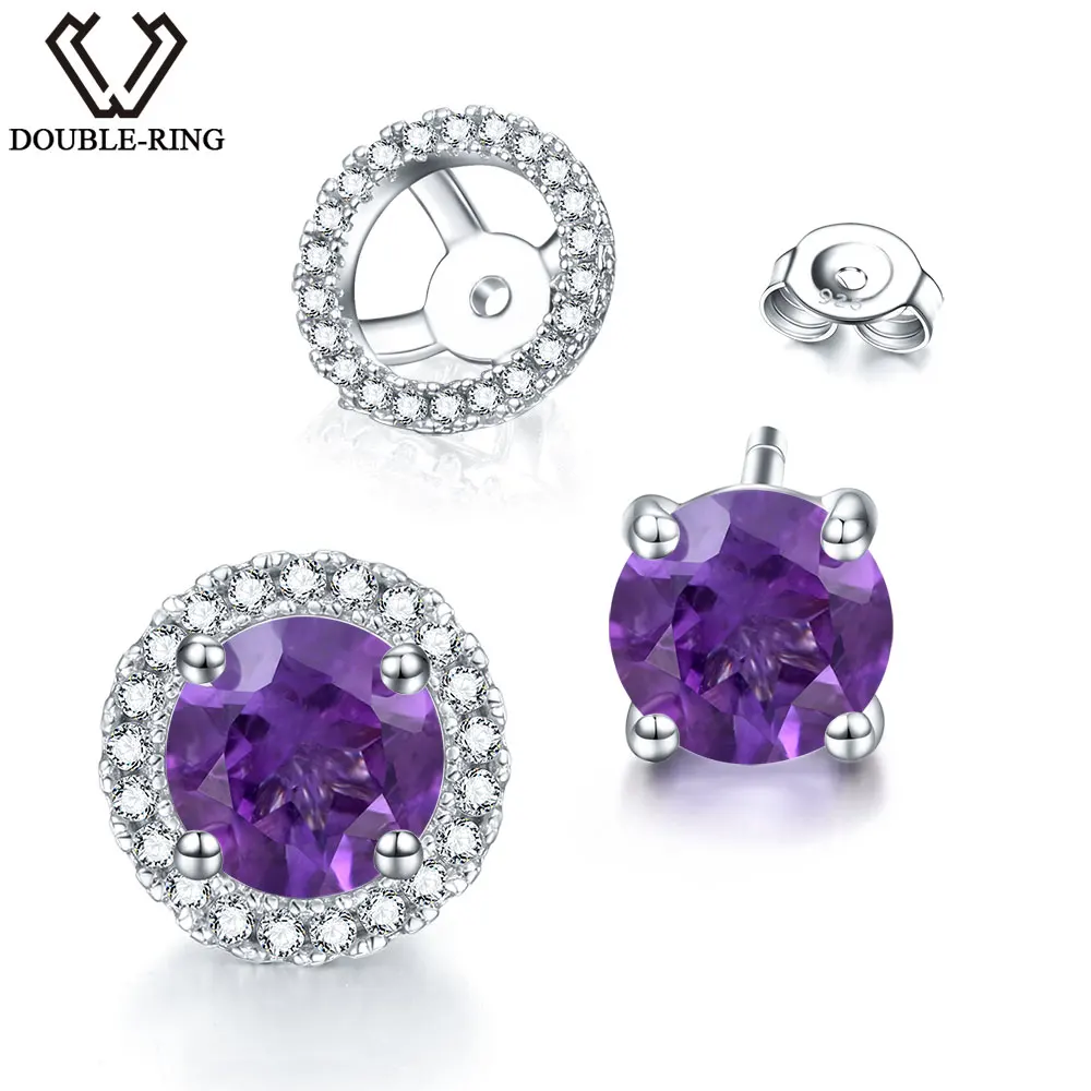 DOUBLE-R 1.57 Ct Round Genuine Natural Amethyst Earrings For Women 925 Sterling Silver Gemstone Stud Earrings wedding Jewelry