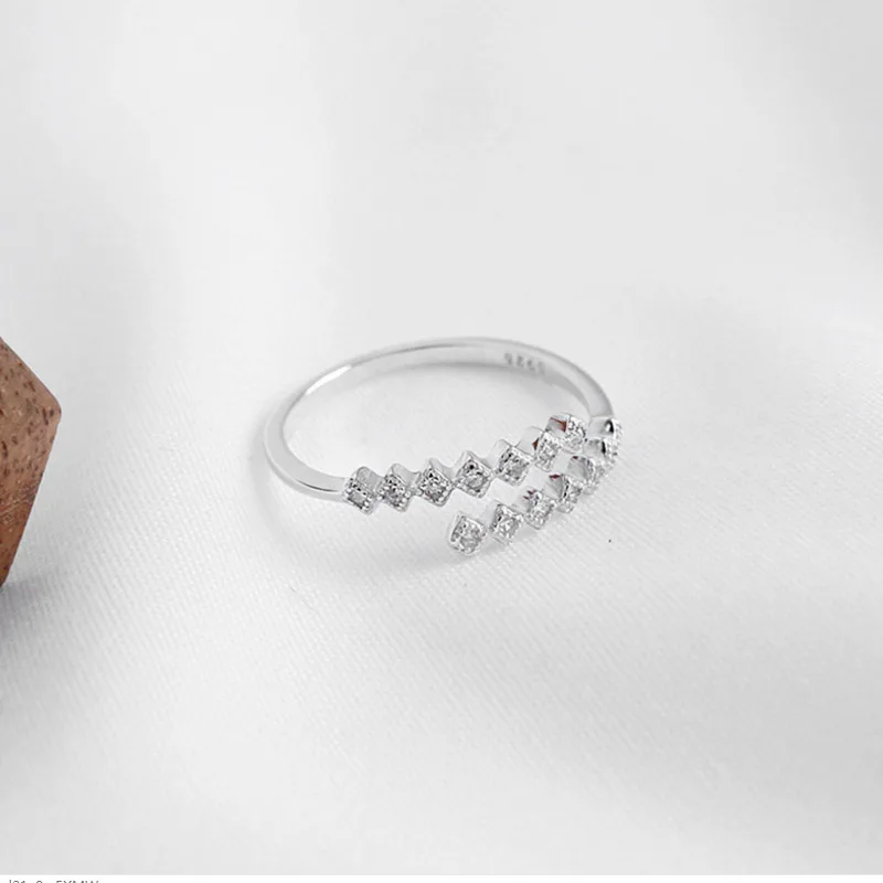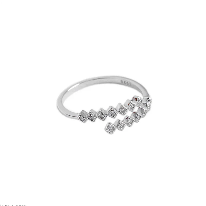 Dual Line Clear Zircon 925 Sterling Silver Jewelry Rings For Women Open Engagement Wedding Silver 925 Ring