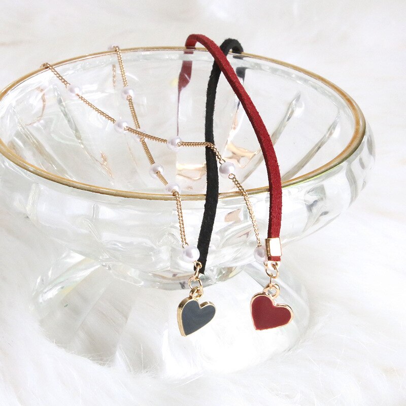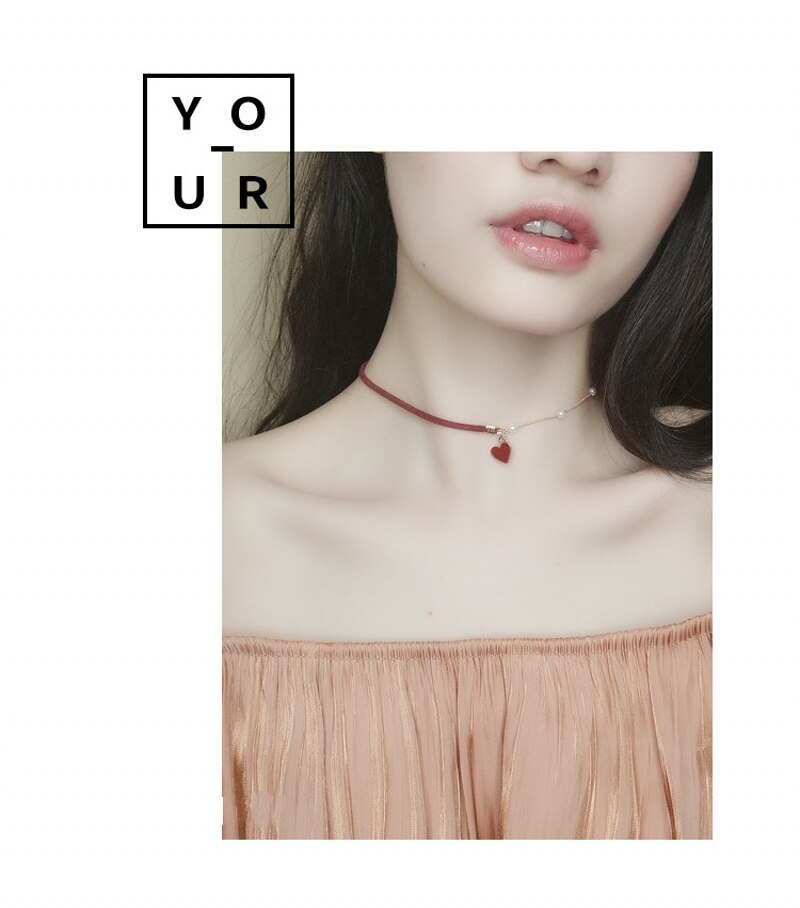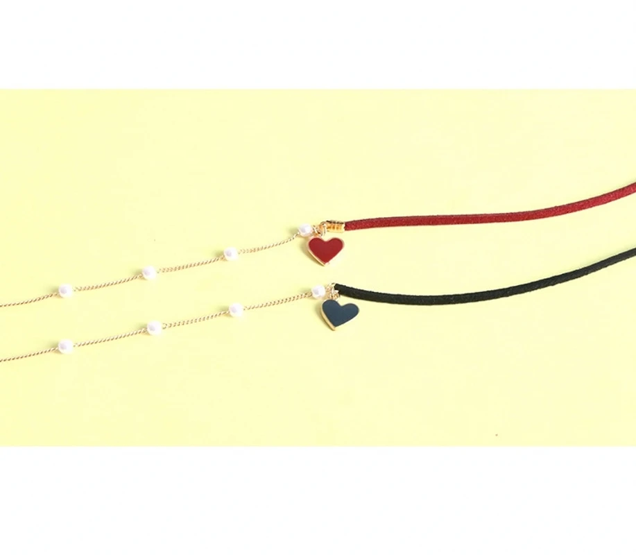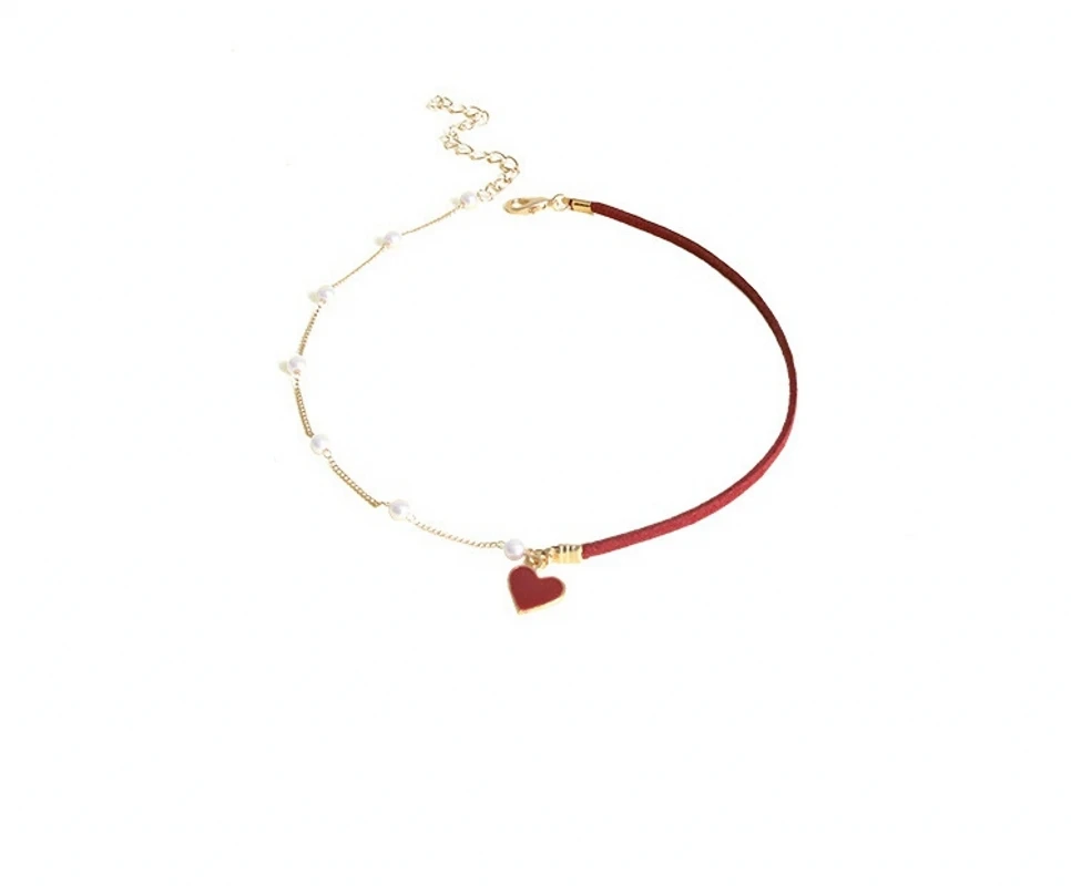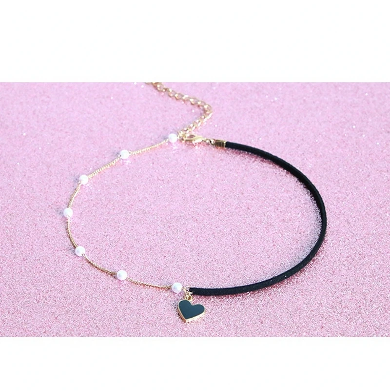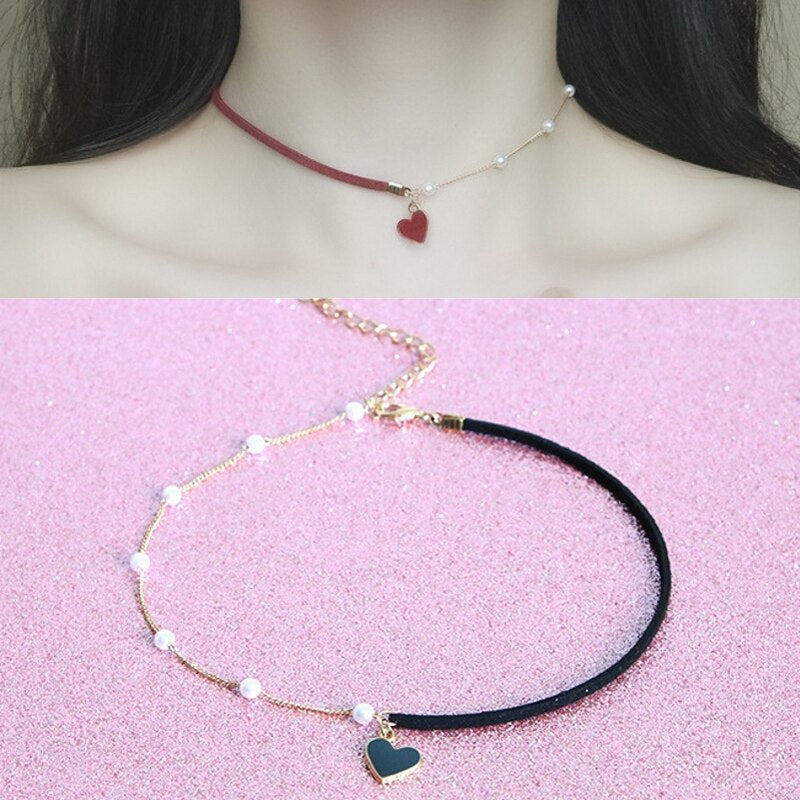 Elegant Heart Pendant Chocker Necklaces For Women Girls Pearls Adjustable Rope Chain Aesthetic Necklaces Wedding Jewelry